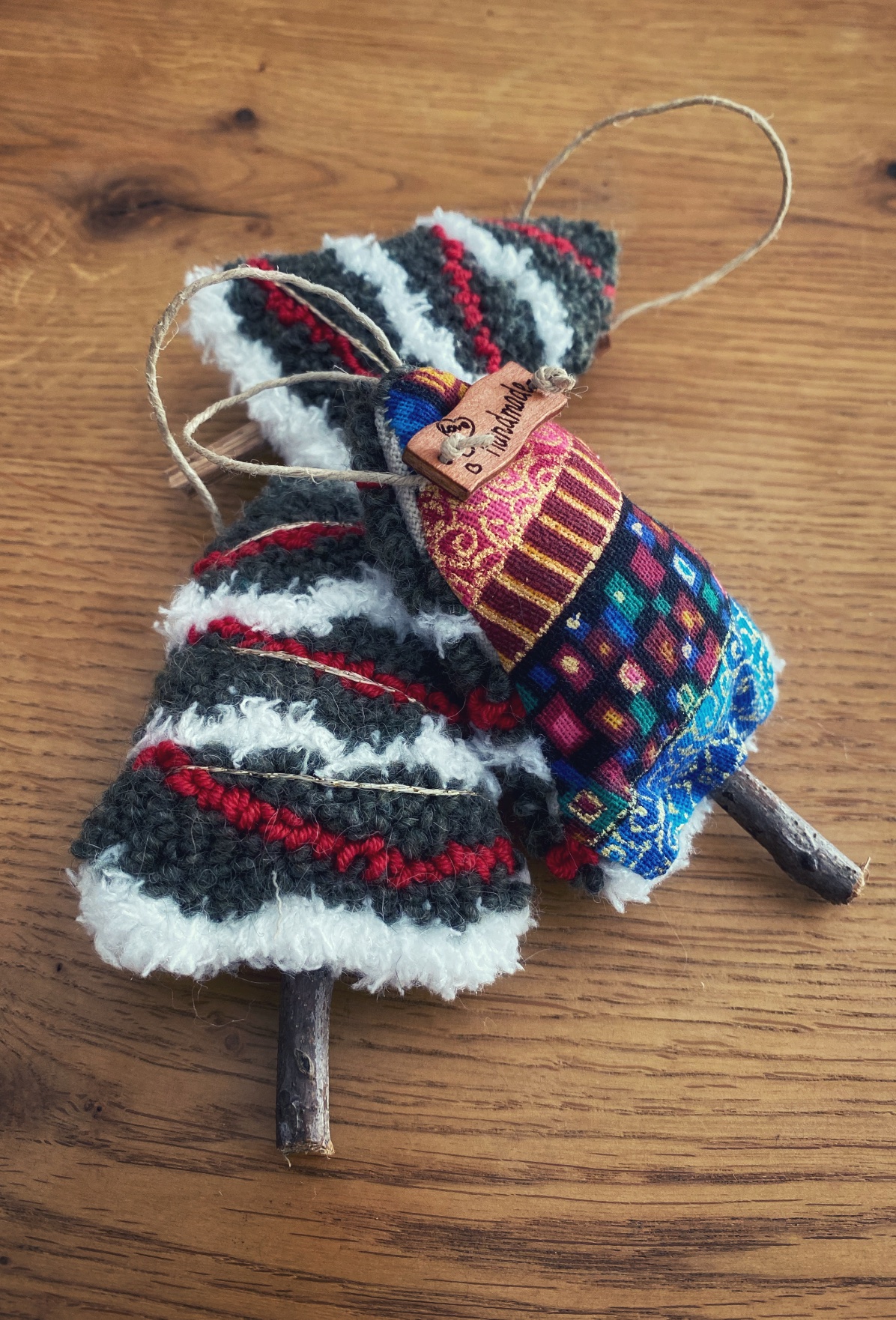 Alberello da appendere per decorare quello che vuoi tu , realizzati a mano con tecnica punch needle in lana/cotone su tela in lino.