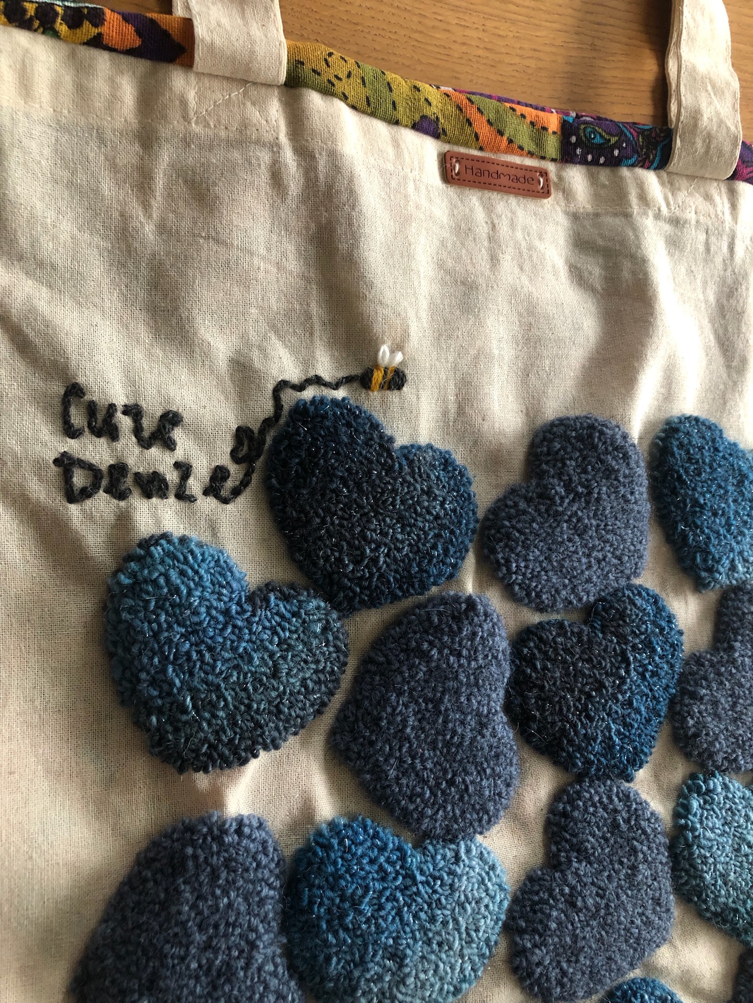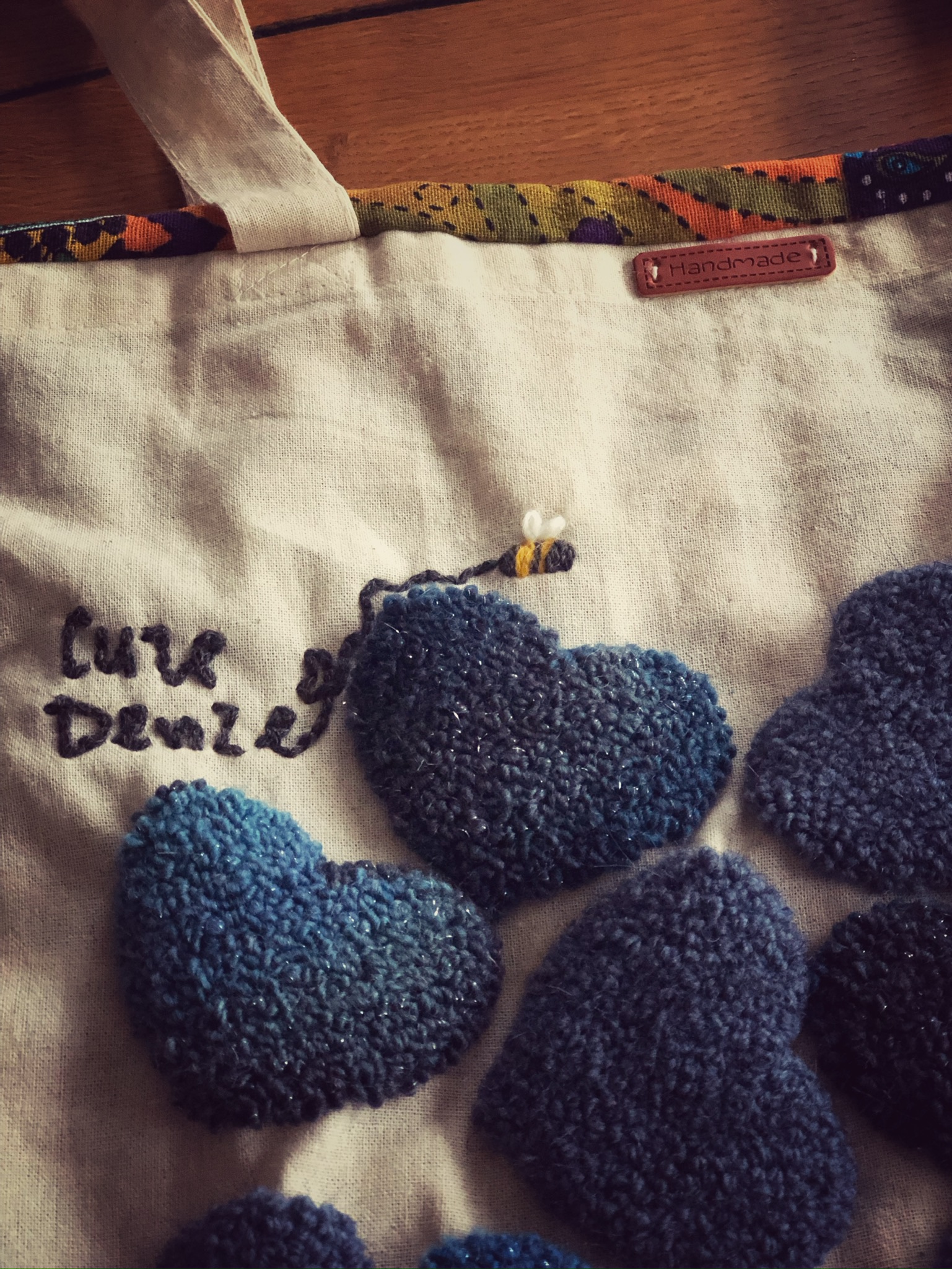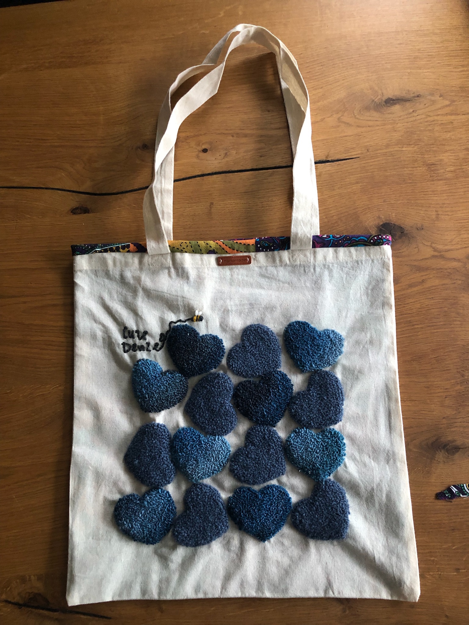 Borsa Tote BAG ricamata a mano in lana e cotone su tela, in busta di lino o di cotone