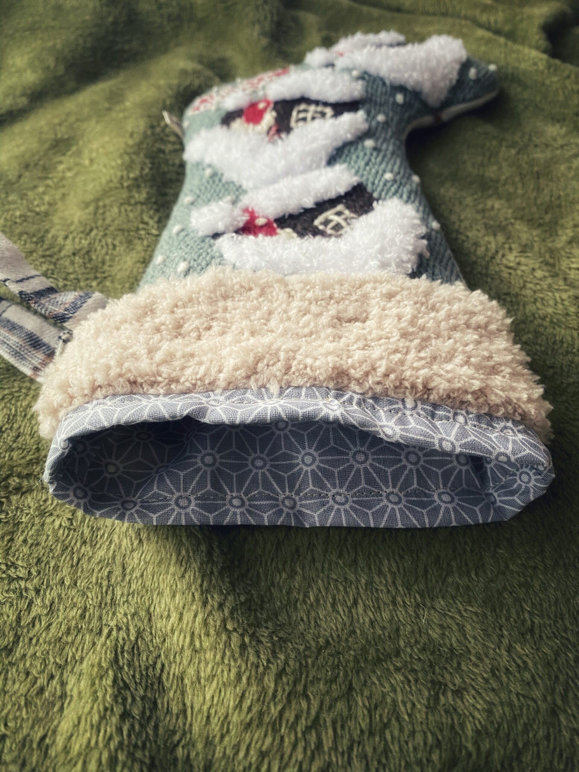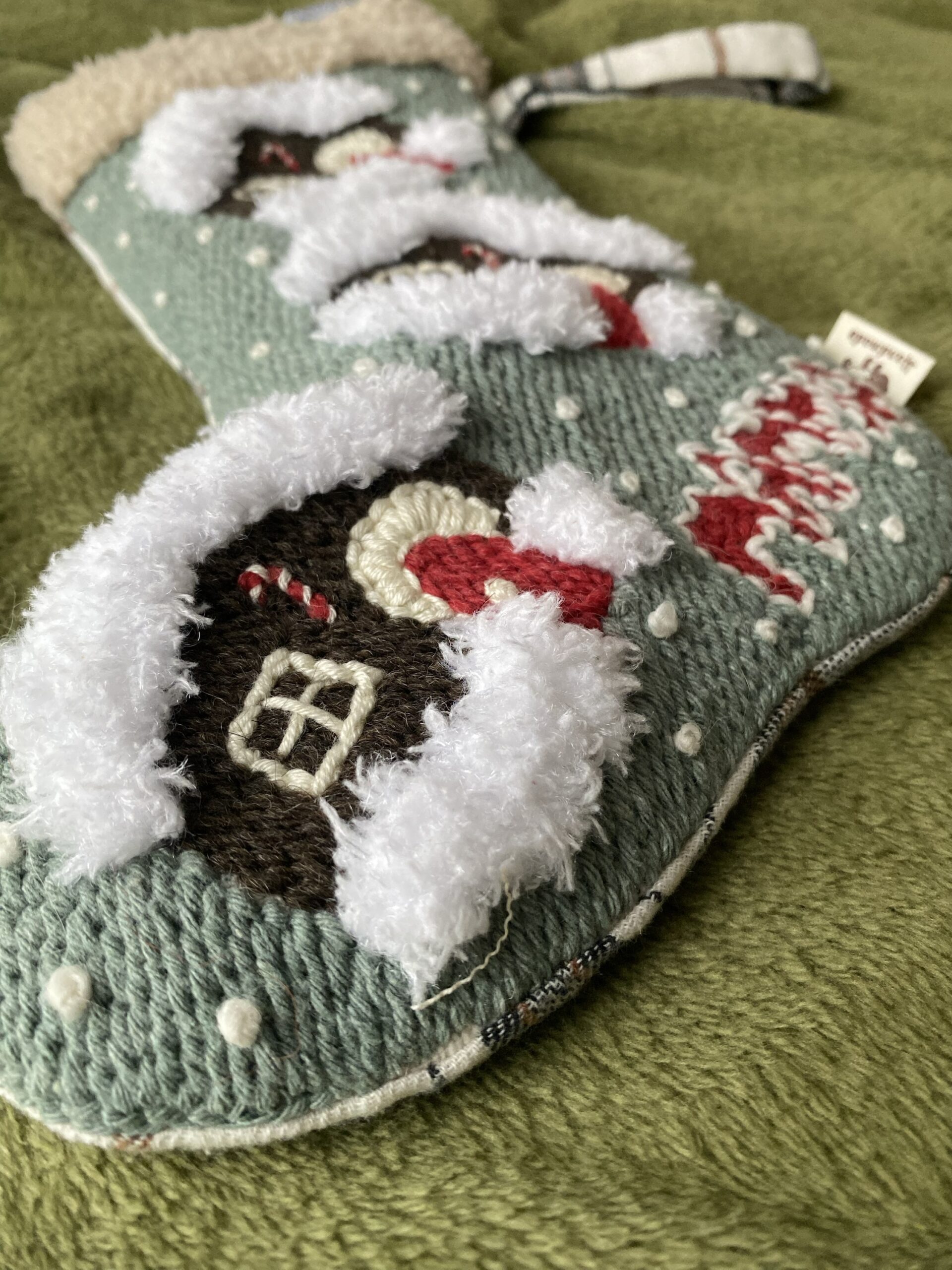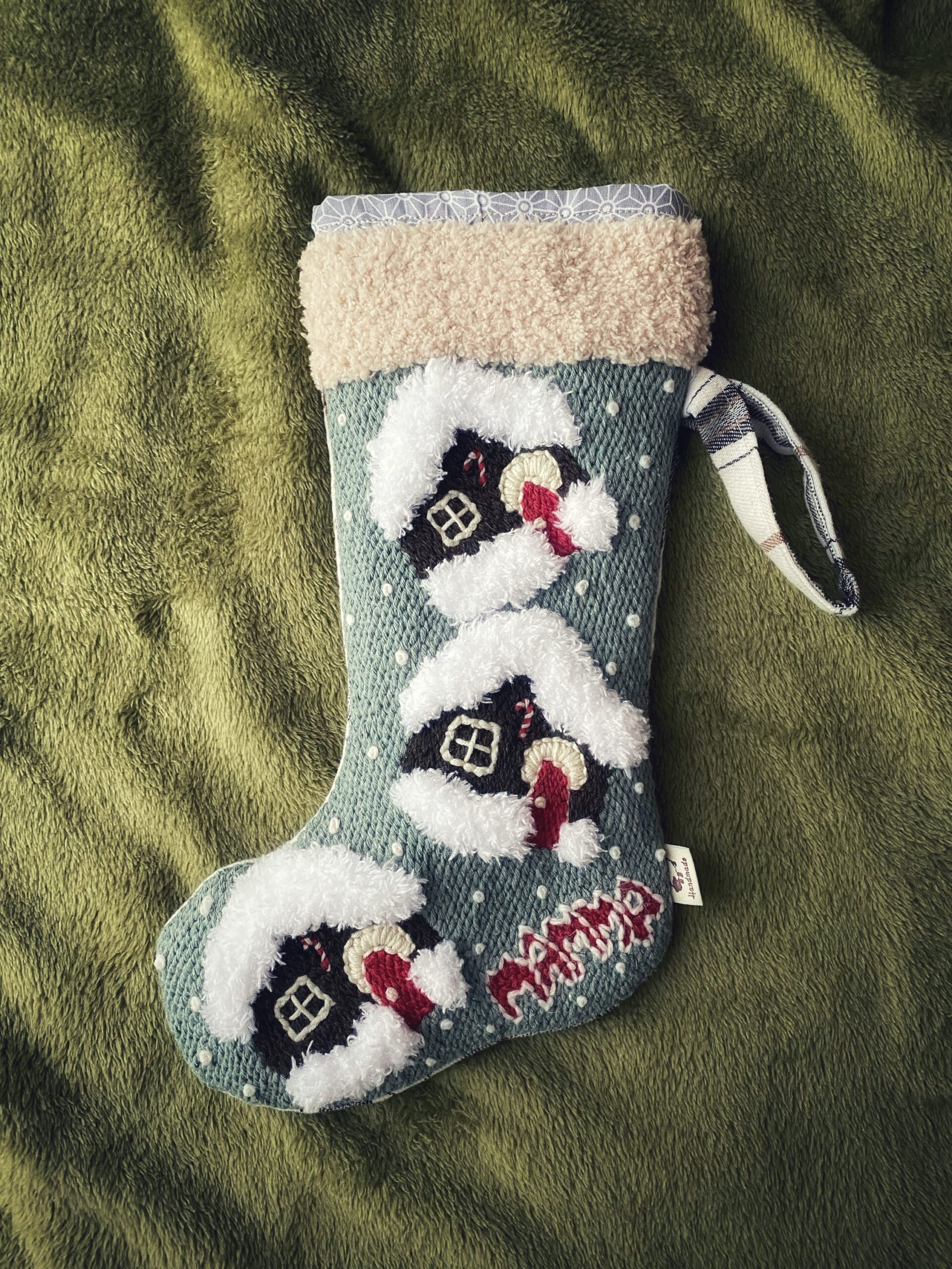 Calze di Natale personalizzate, perfette per contenere dolci e piccoli regali, ricamata e confezionata interamente a mano.