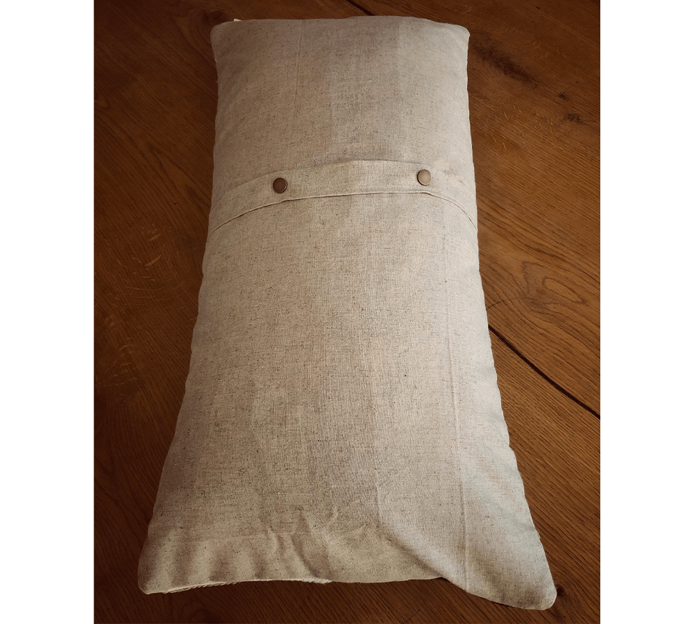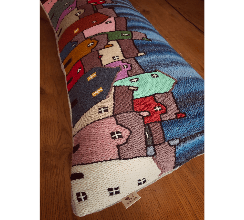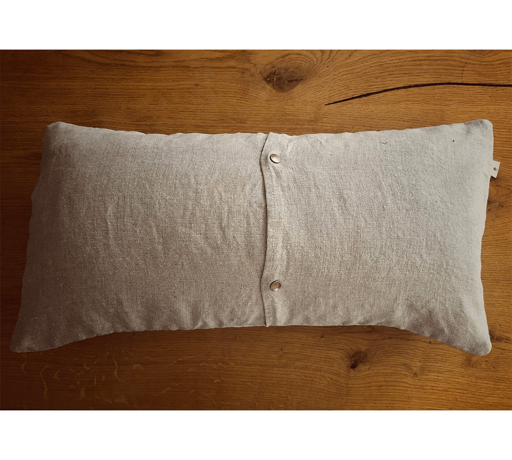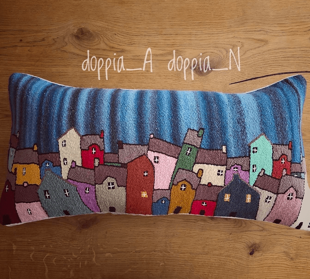 Cuscino ricamato a mano con lane e prodotti naturali, completamente sfoderabile.