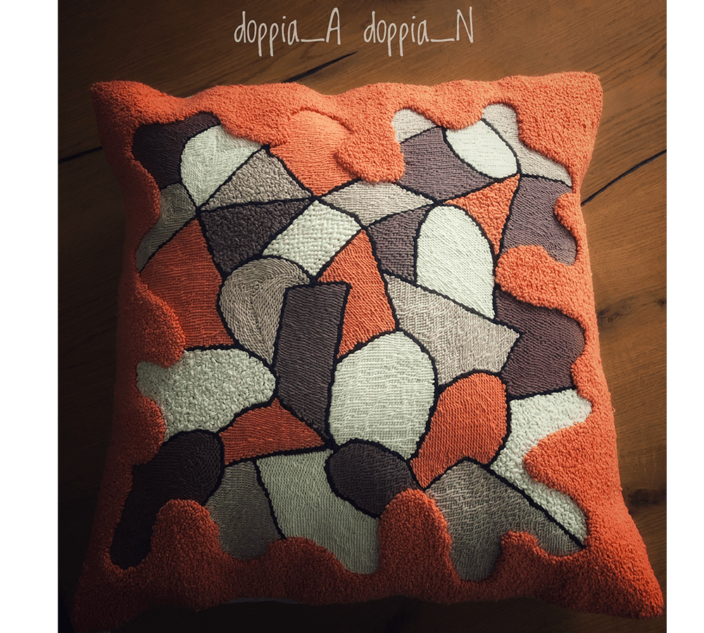 Cuscino ricamato a mano con lane e prodotti naturali, completamente sfoderabile.