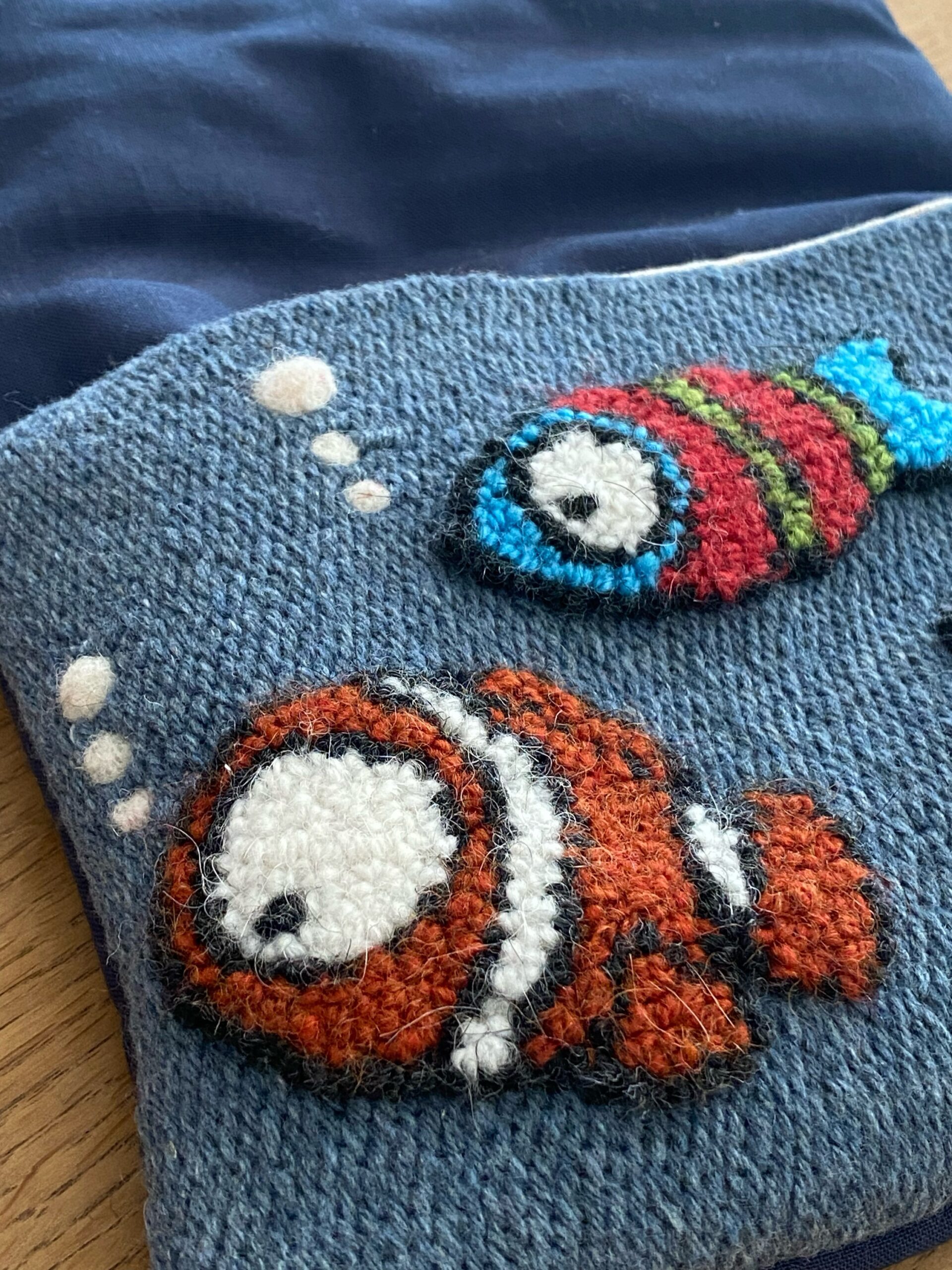 Ricamato a mano con tecnica punch needle su tela in lino , imbottito , morbido al tatto .