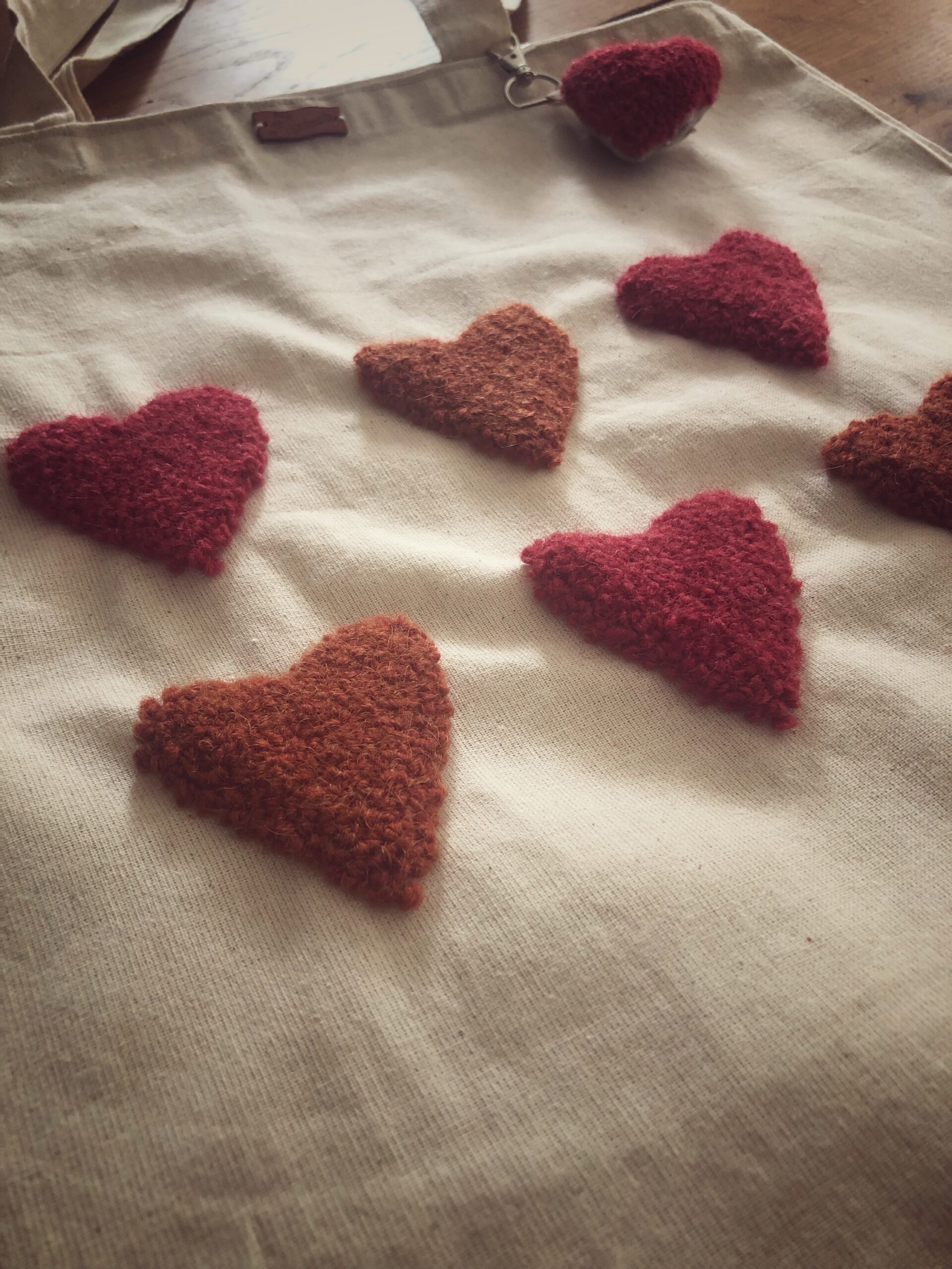 Borsa Tote BAG ricamata a mano in lana e cotone su tela, in busta di lino o di cotone