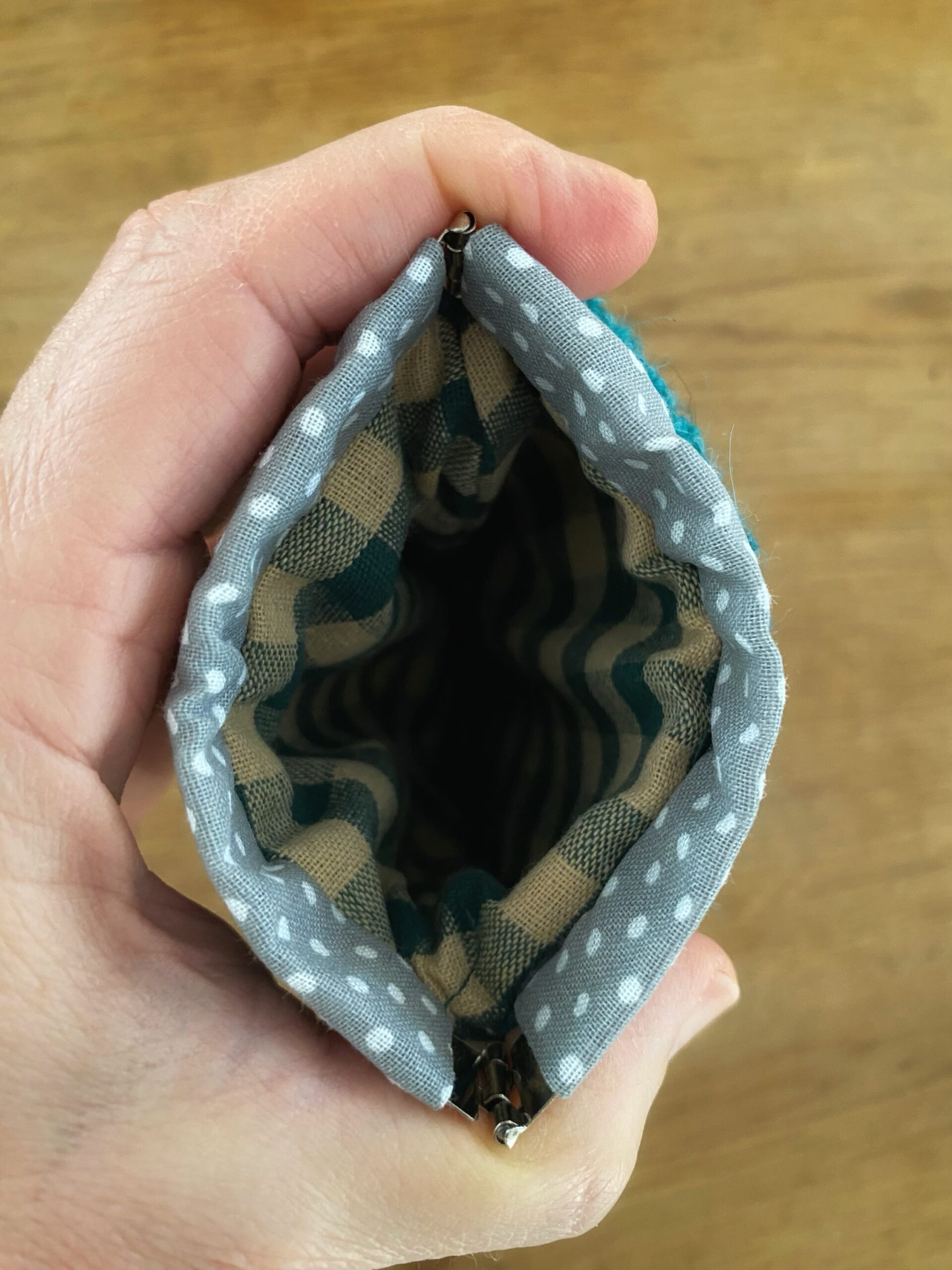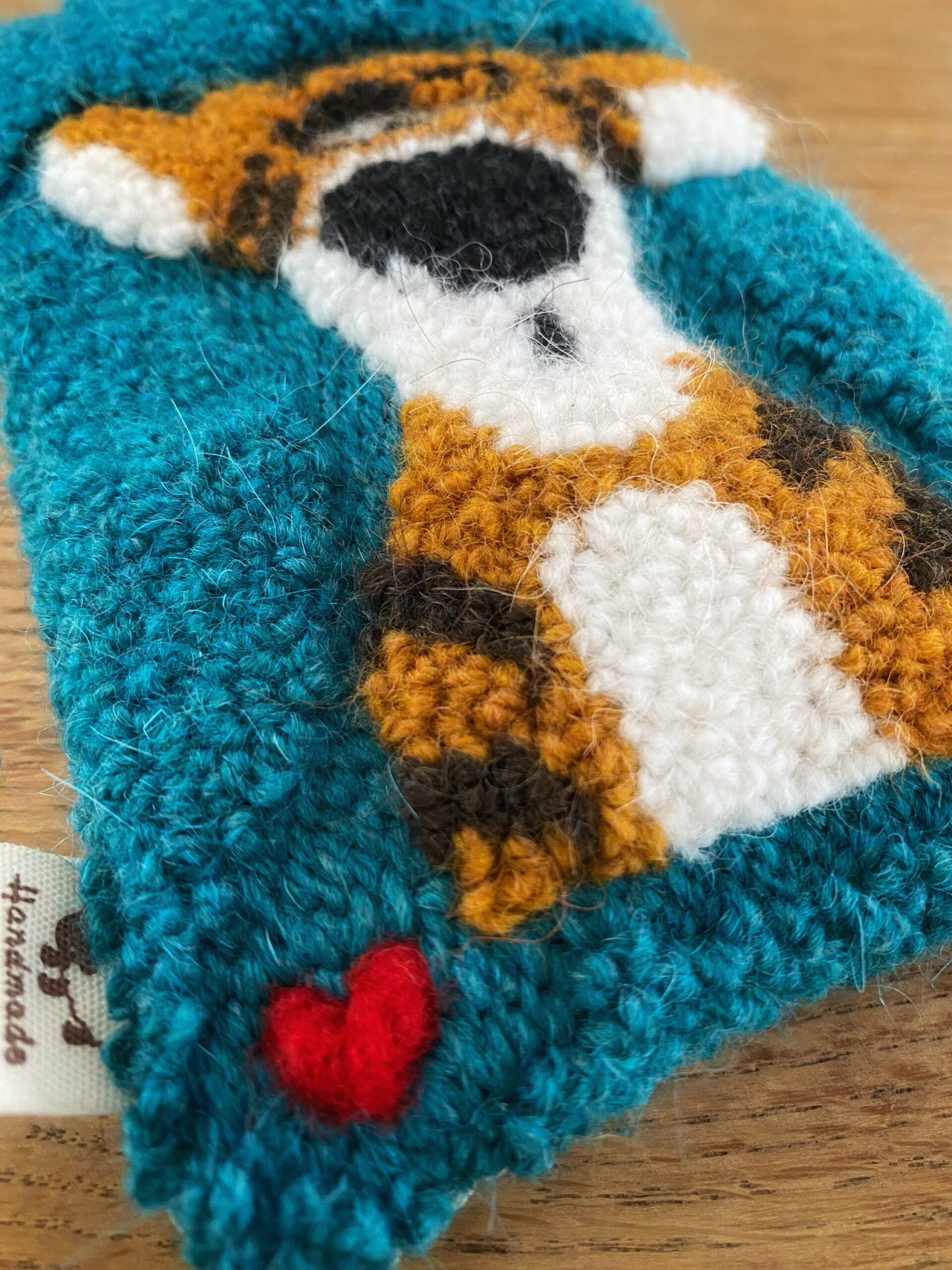 Custodia con apertura flessibile realizzata interamente a mano con tecnica punch needle , lana e cotone su tela in lino . Imbottita