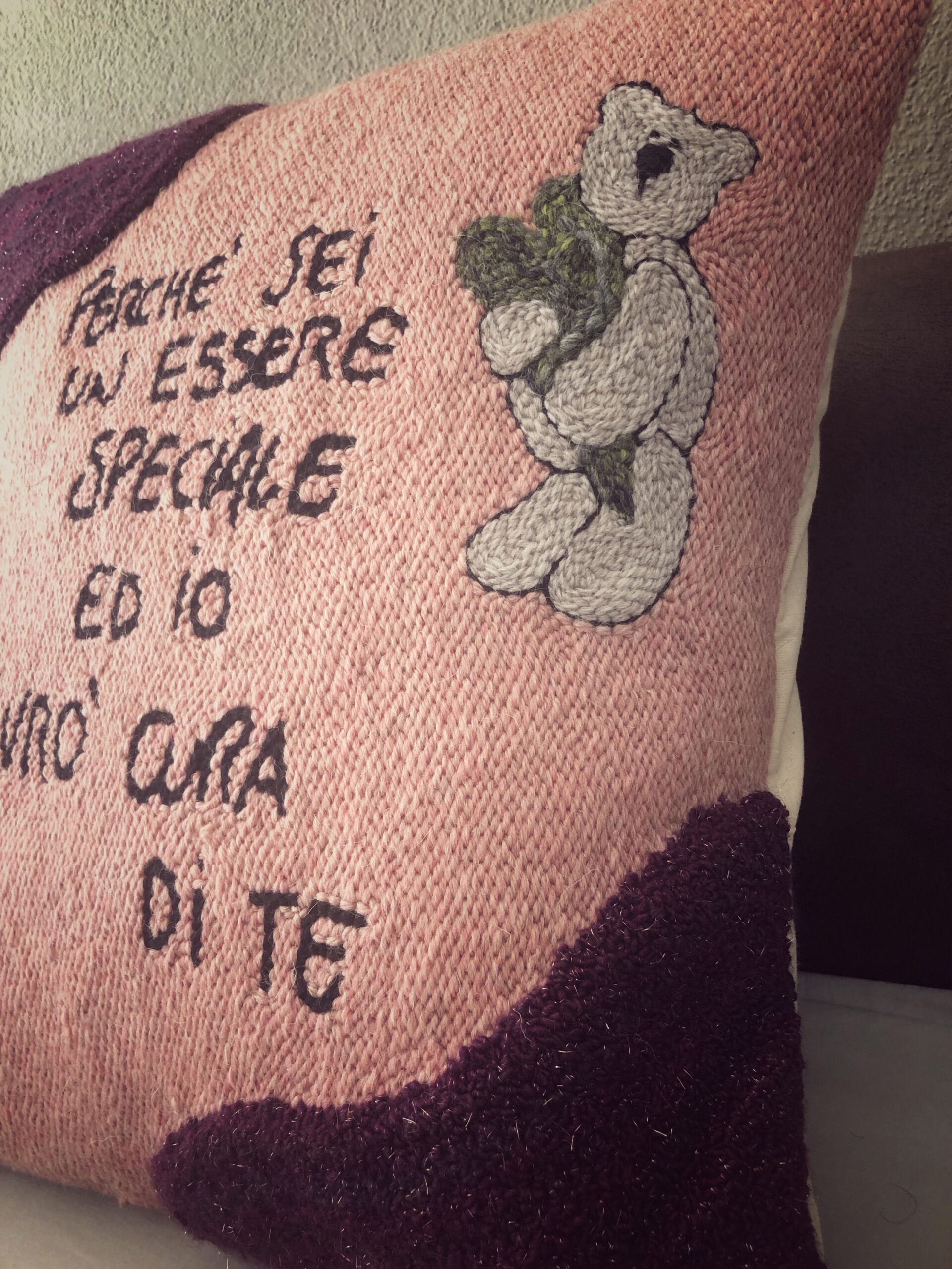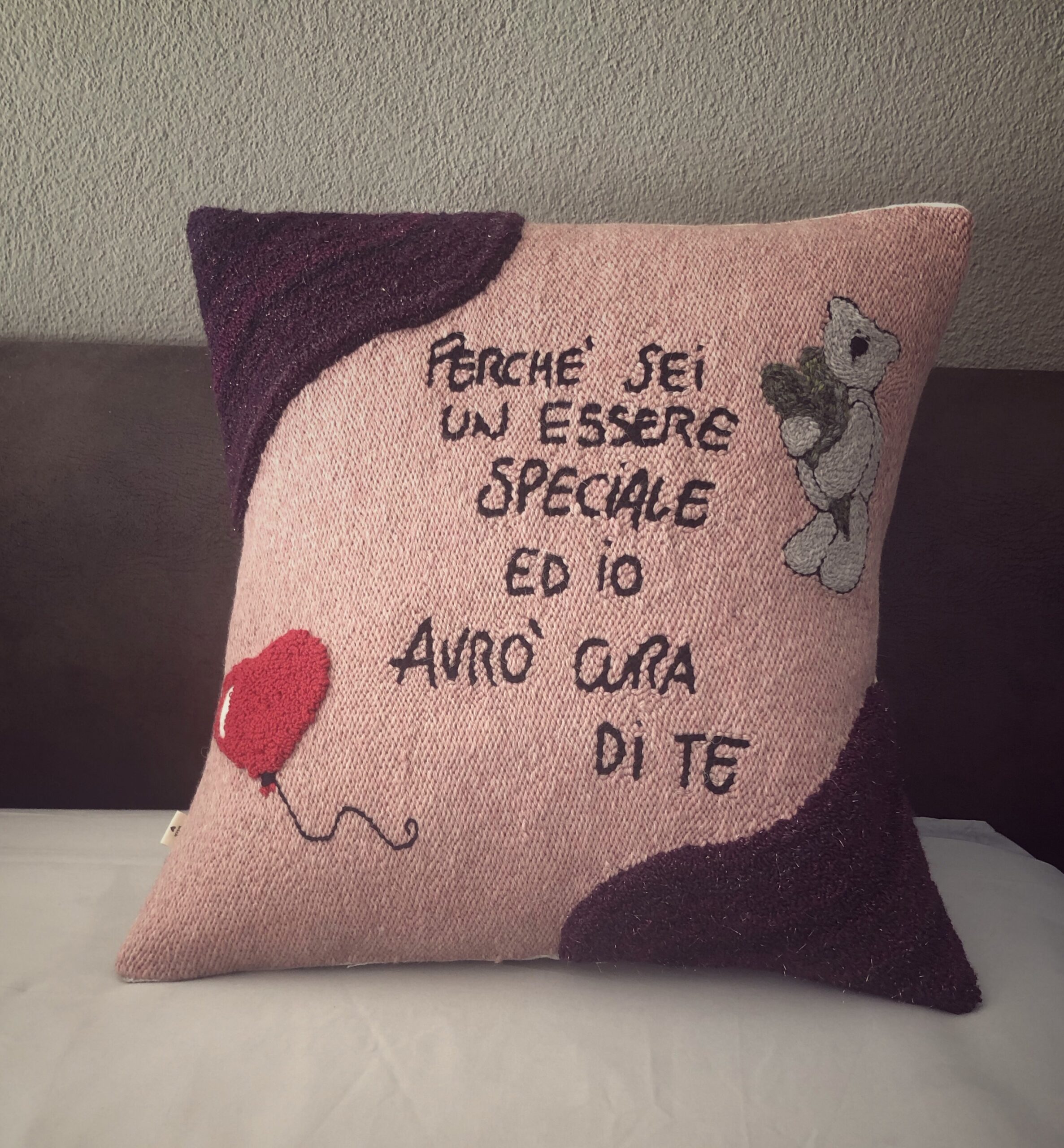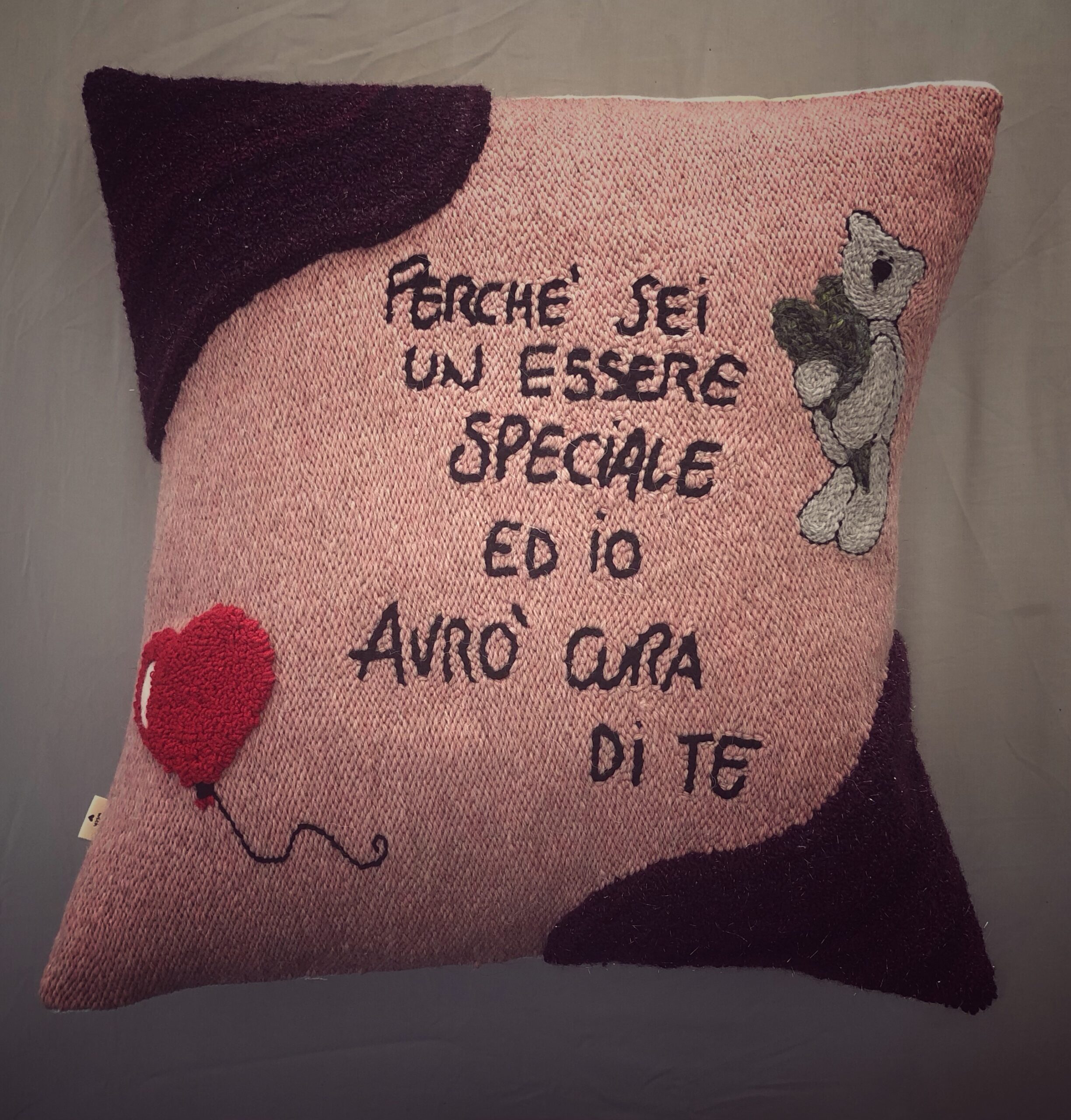 Cuscino sfoderabile personalizzato, ricamato e confezionato a mano.
