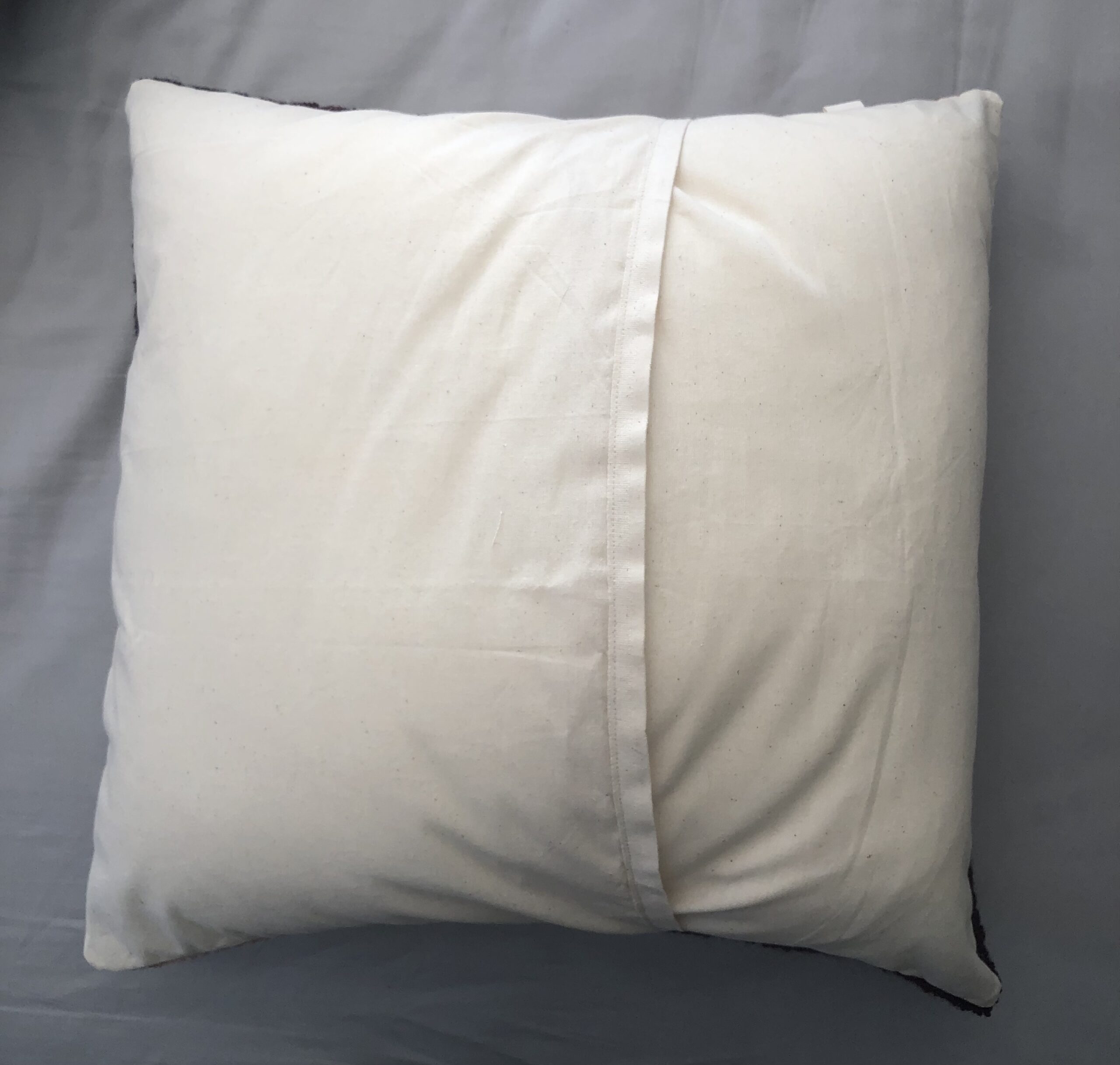Cuscino ricamato a mano con lane e prodotti naturali, completamente sfoderabile.