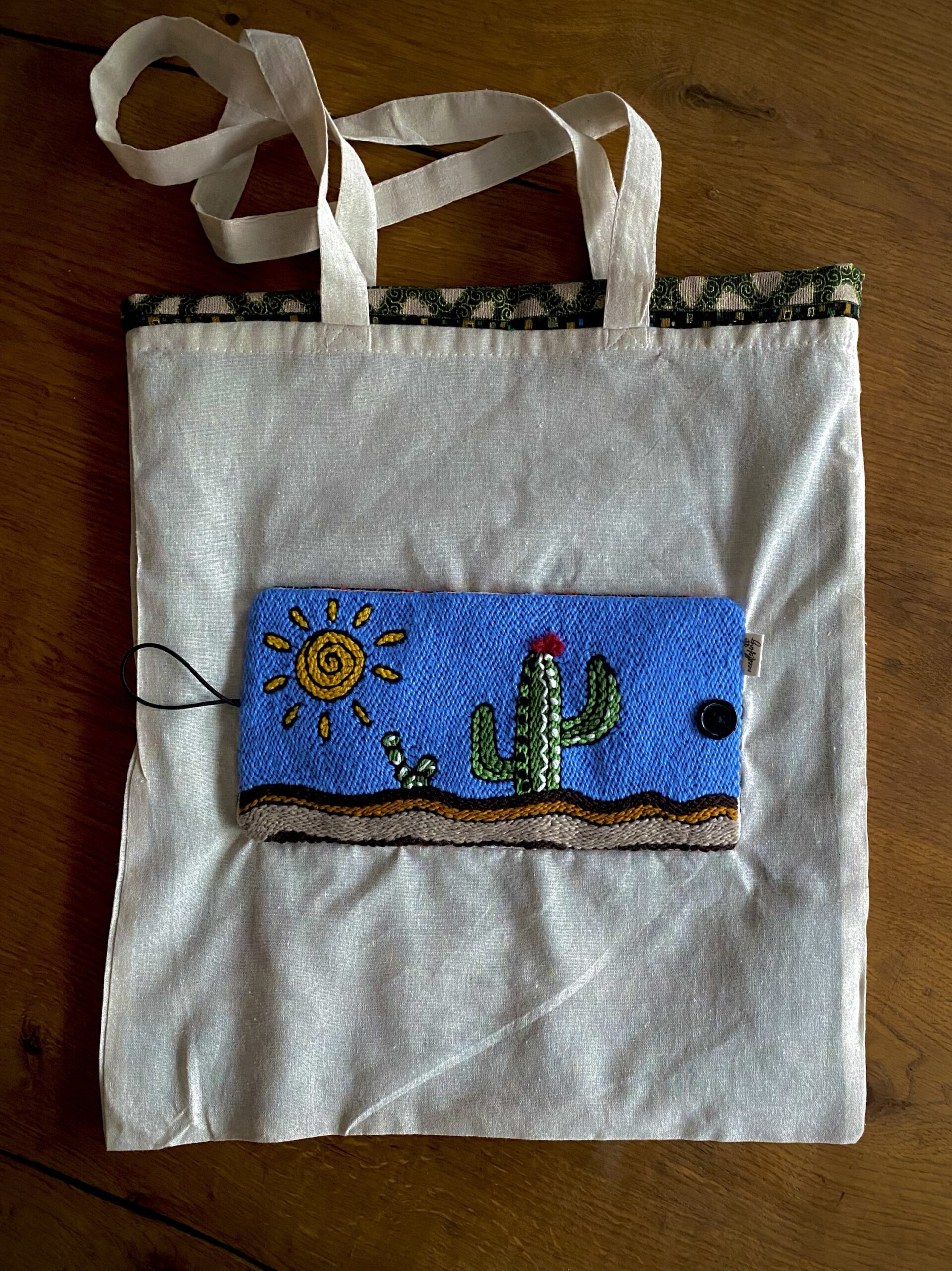 Tote Bag ripiegabile, ricamata a mano su tela di lino
