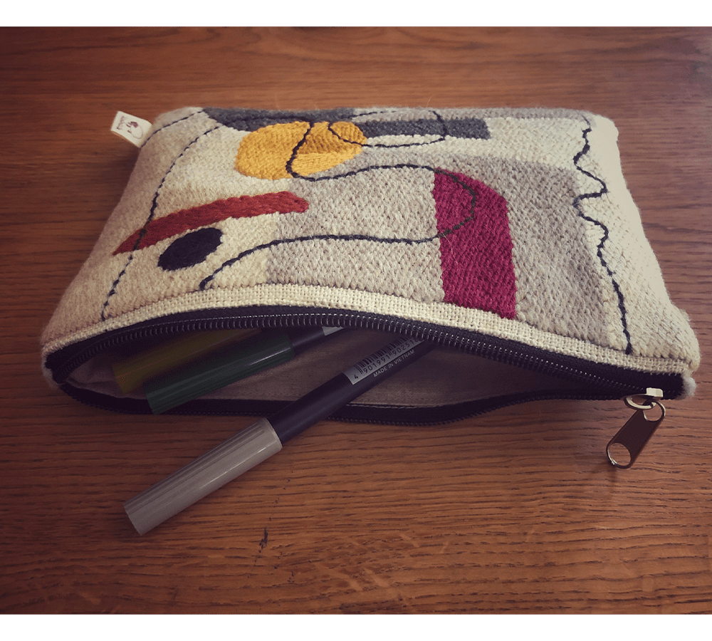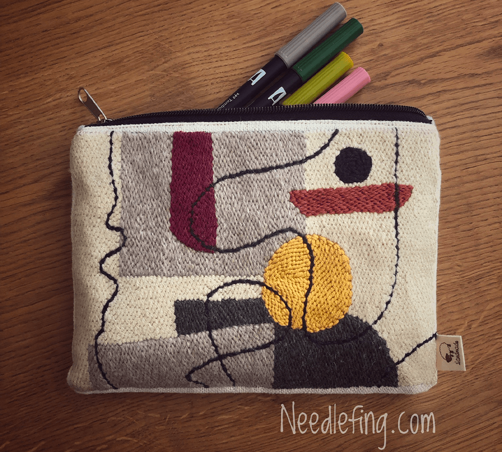 Astuccio ricamato in lana e cotone su tela, in busta di lino o di cotone – Punch Needle