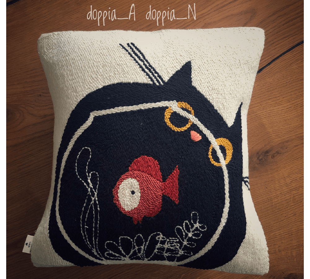 Cuscino ricamato a mano con lane e prodotti naturali, completamente sfoderabile.