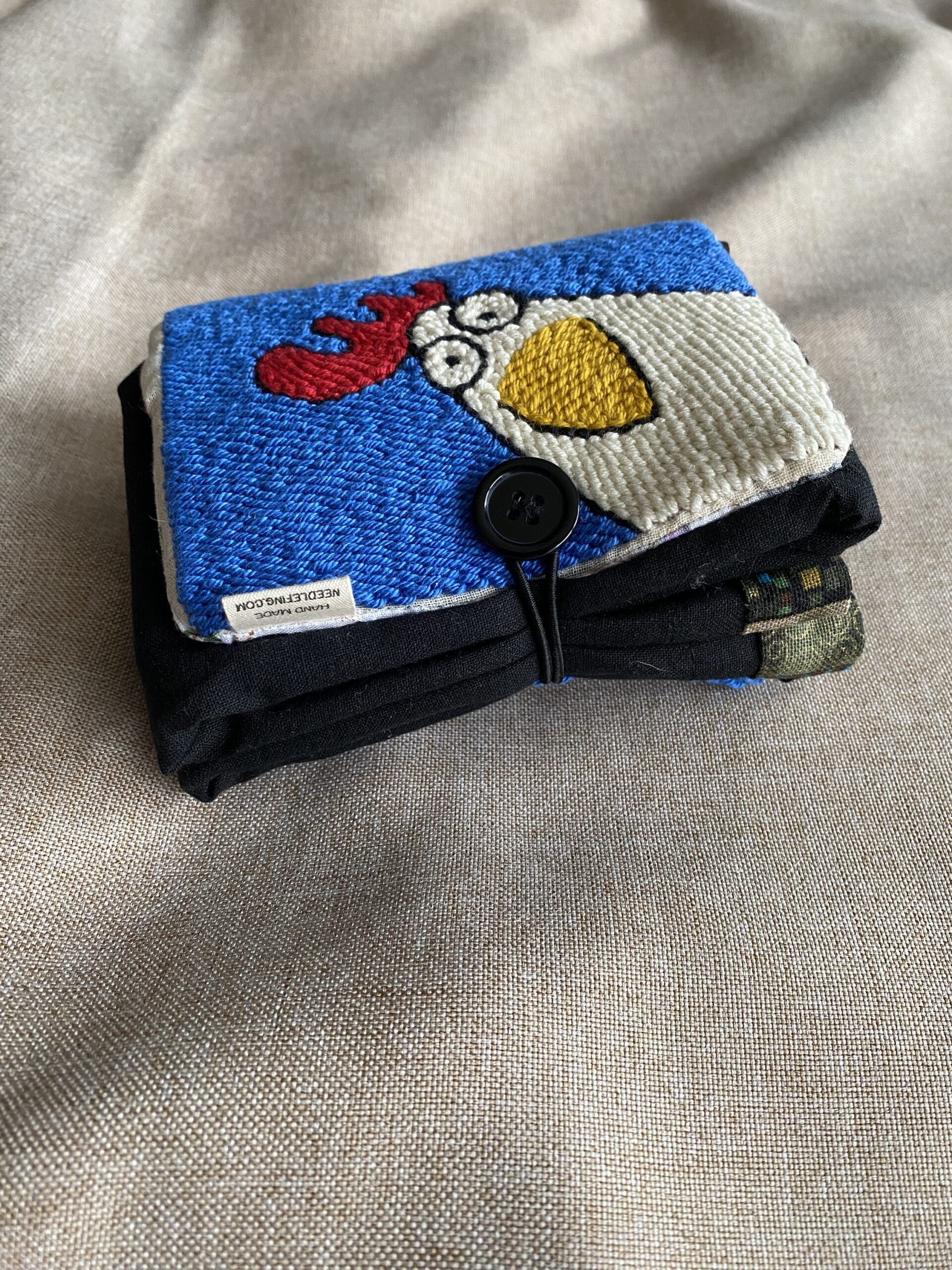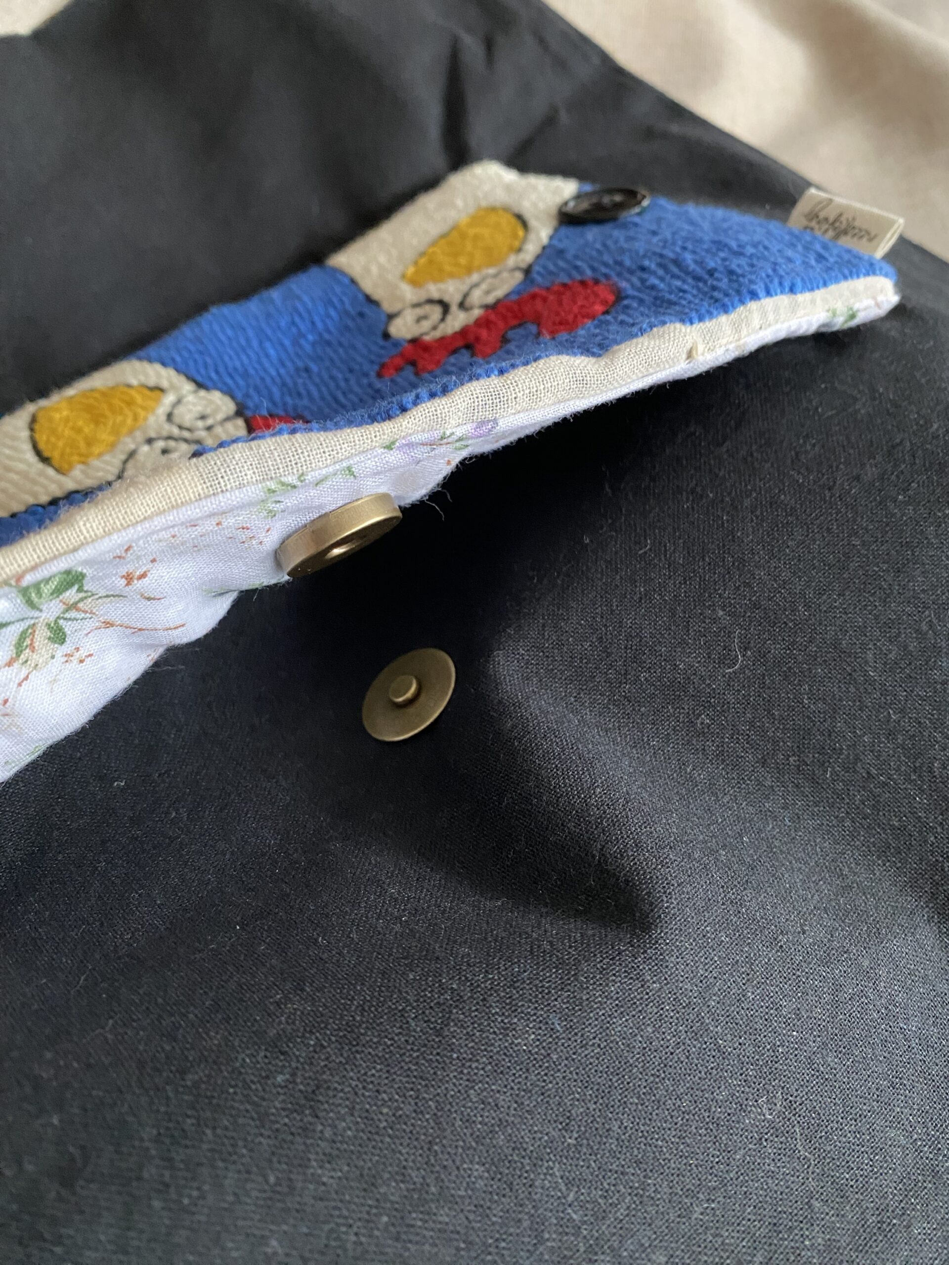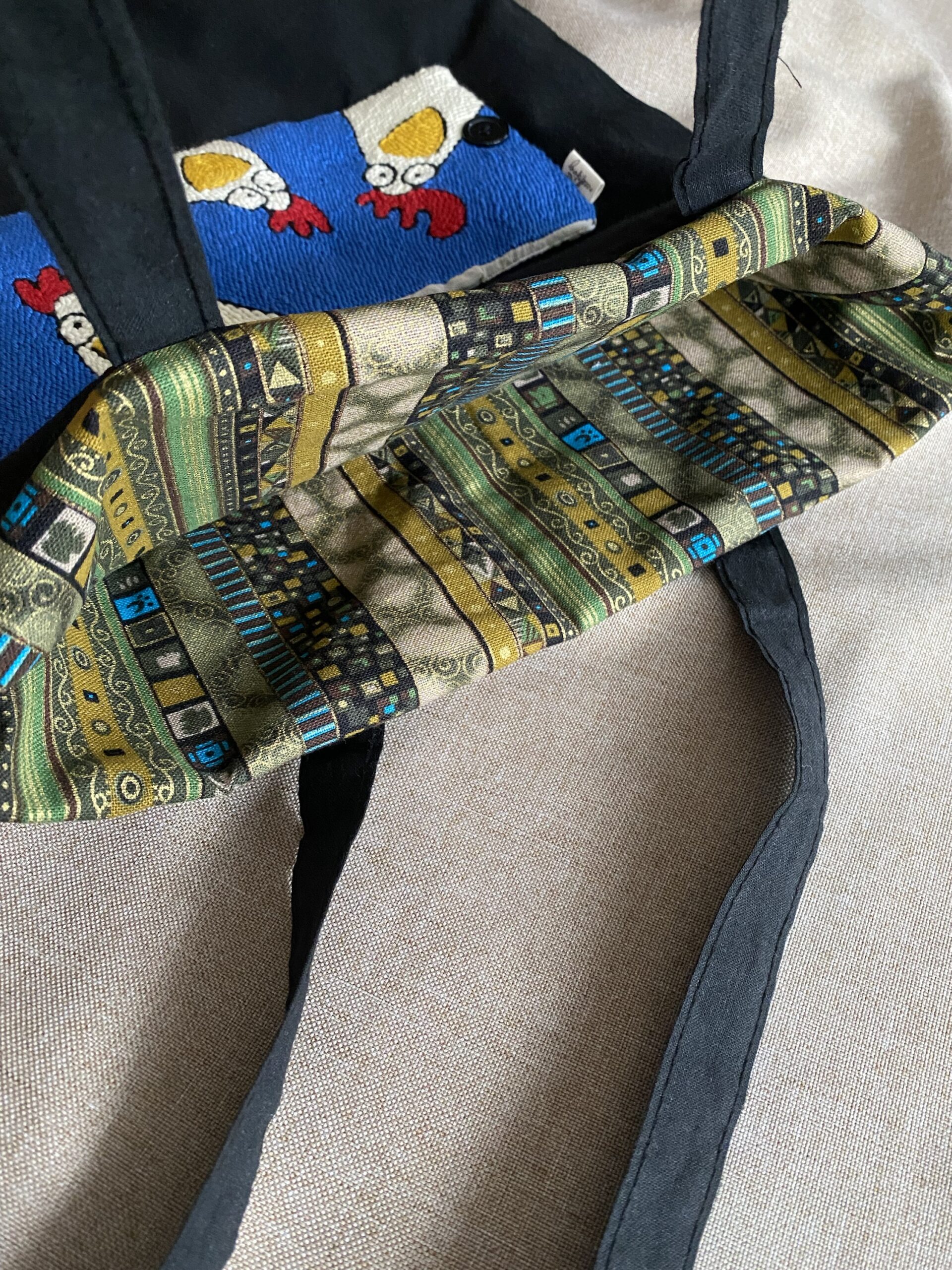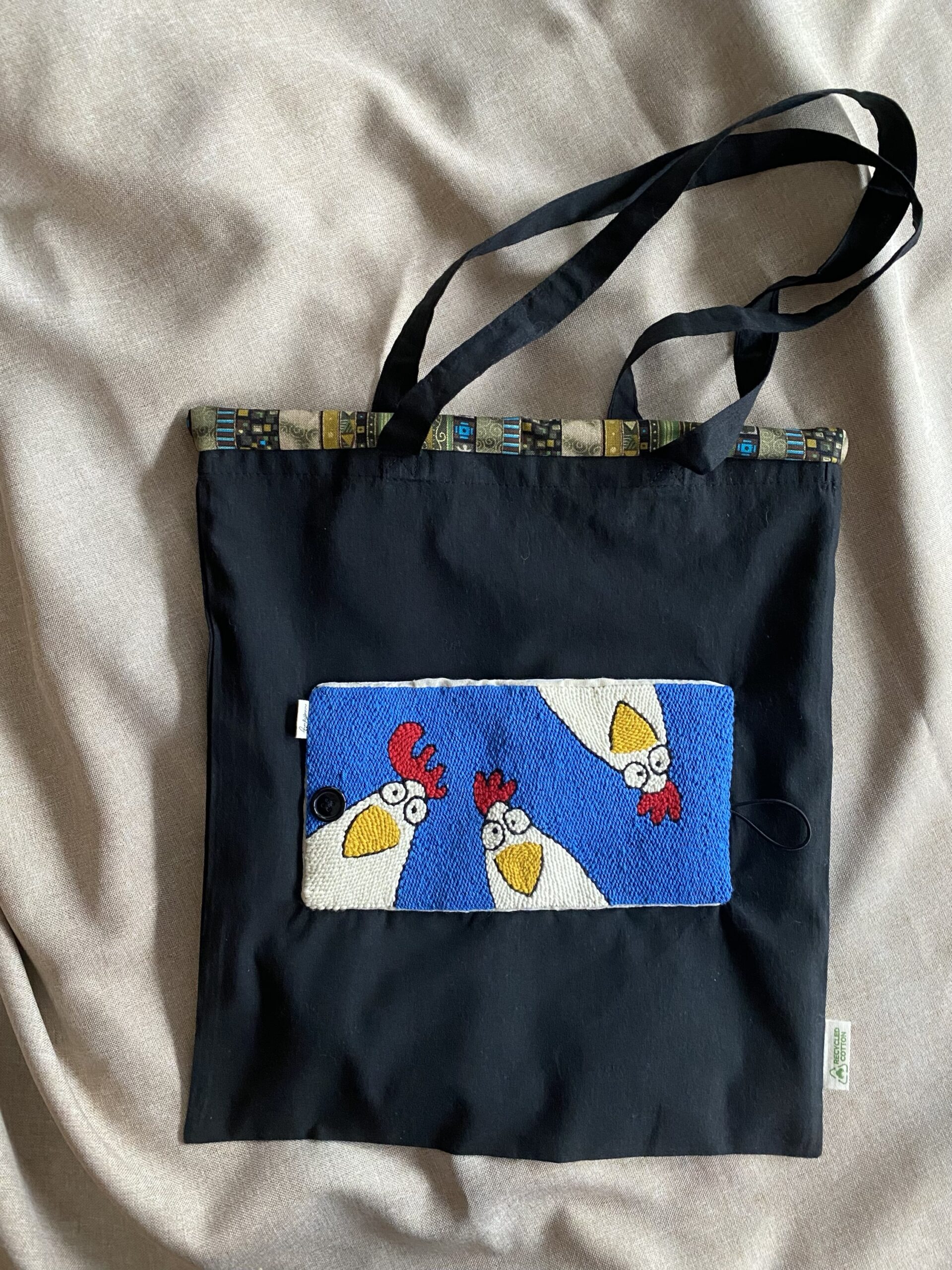 Tote Bag ripiegabile, ricamata a mano su tela di lino.