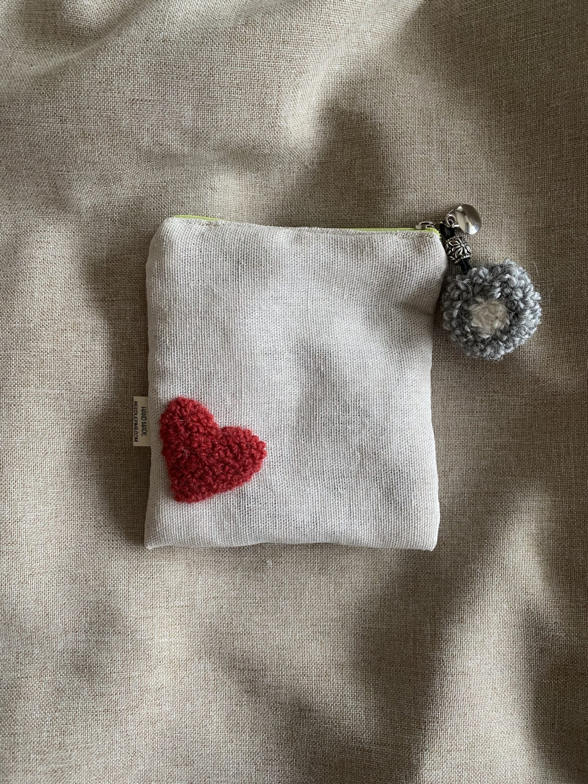 Astuccio con cerniera ricamato in lana su tela in cotone
