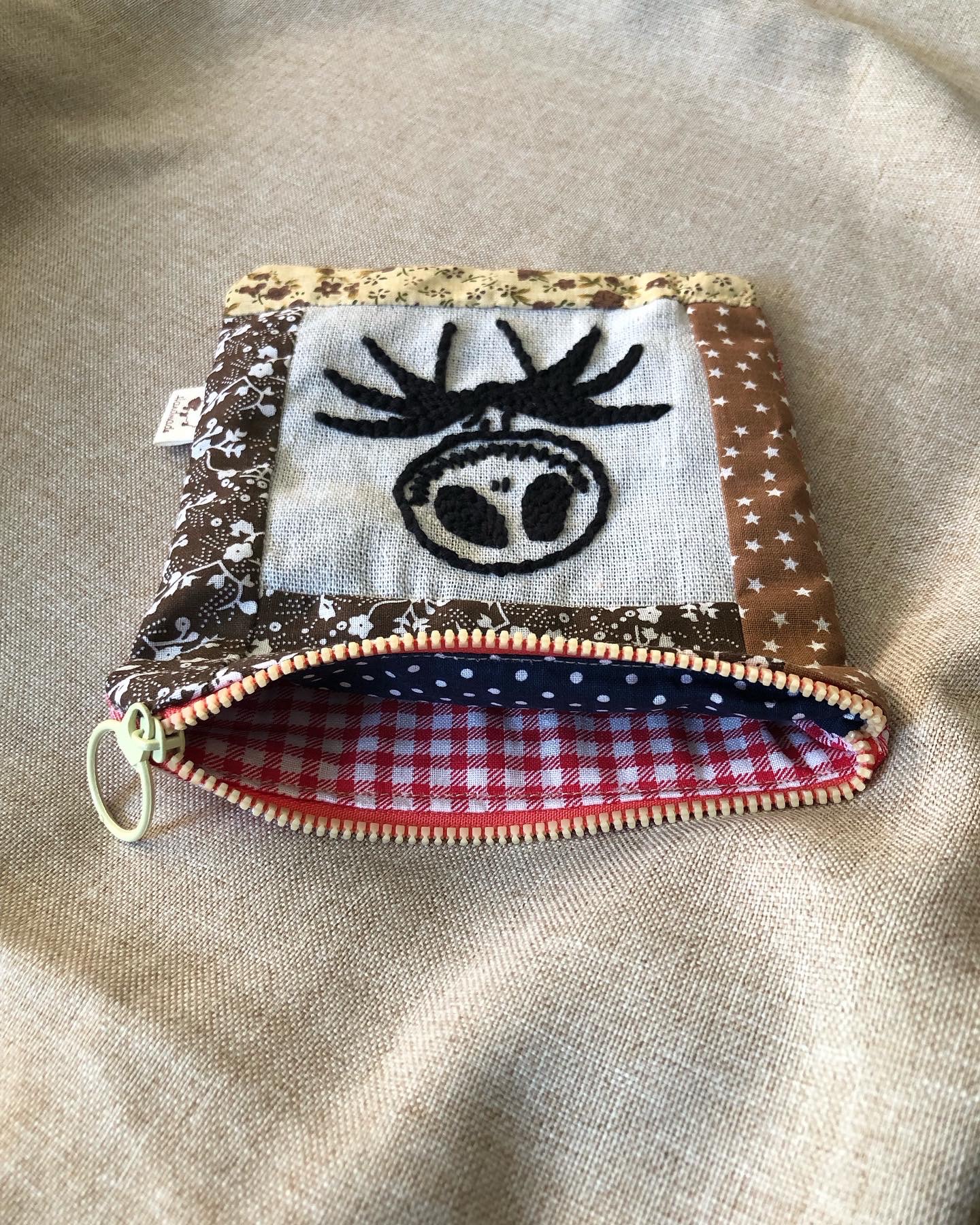 Astuccio ricamato in cotone su tela in Lino
