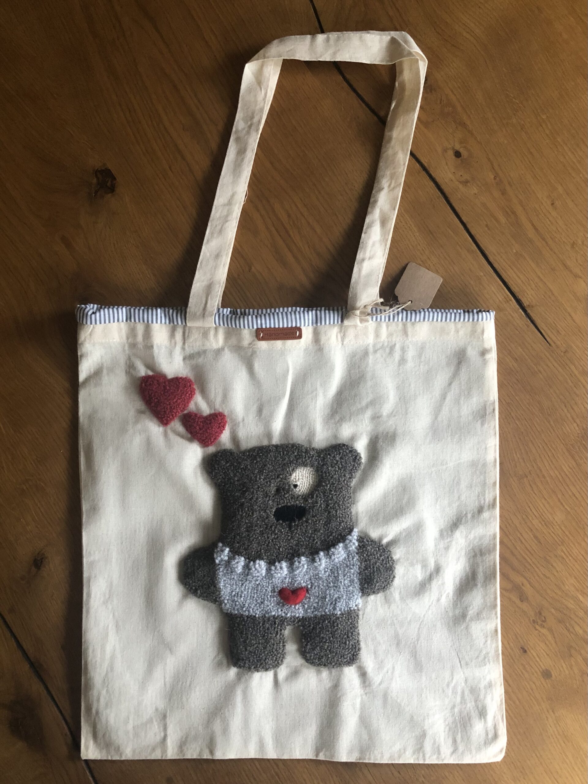 Borsa Tote BAG ricamata a mano in lana e cotone su tela, in busta di lino o di cotone