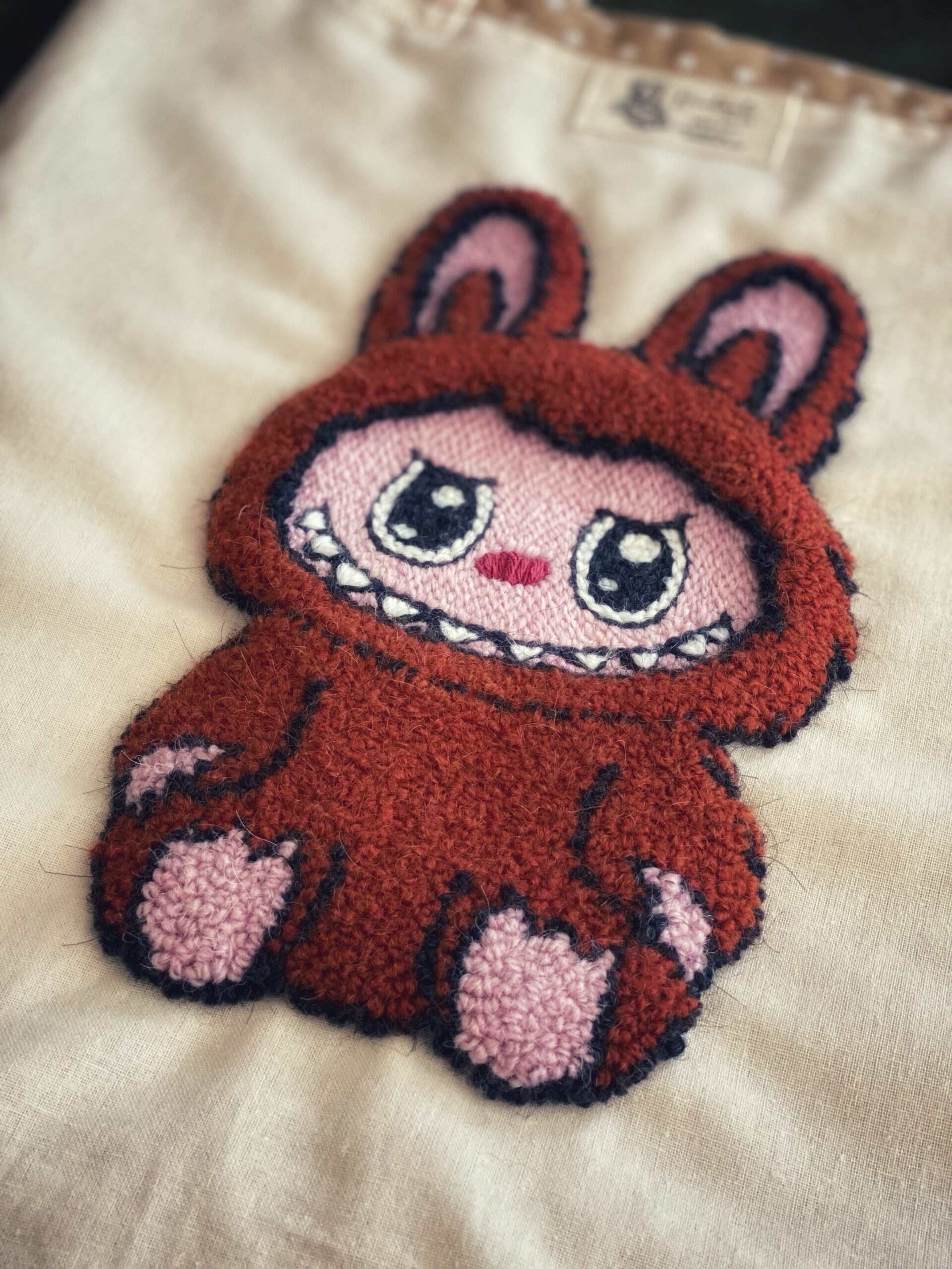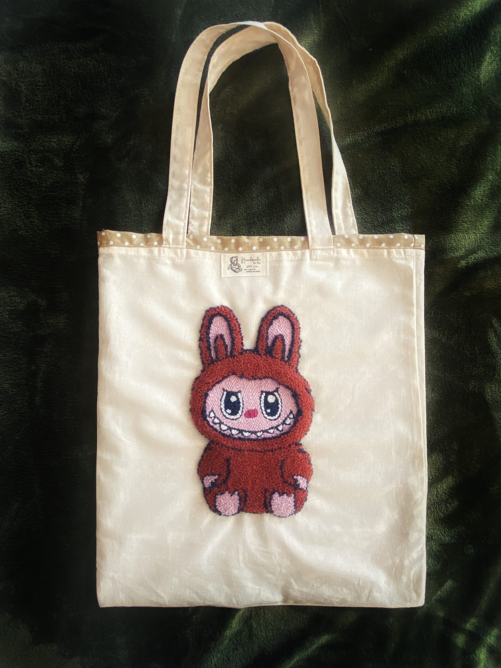 Borsa Tote BAG ricamata a mano in lana e cotone su tela, in busta di lino o di cotone