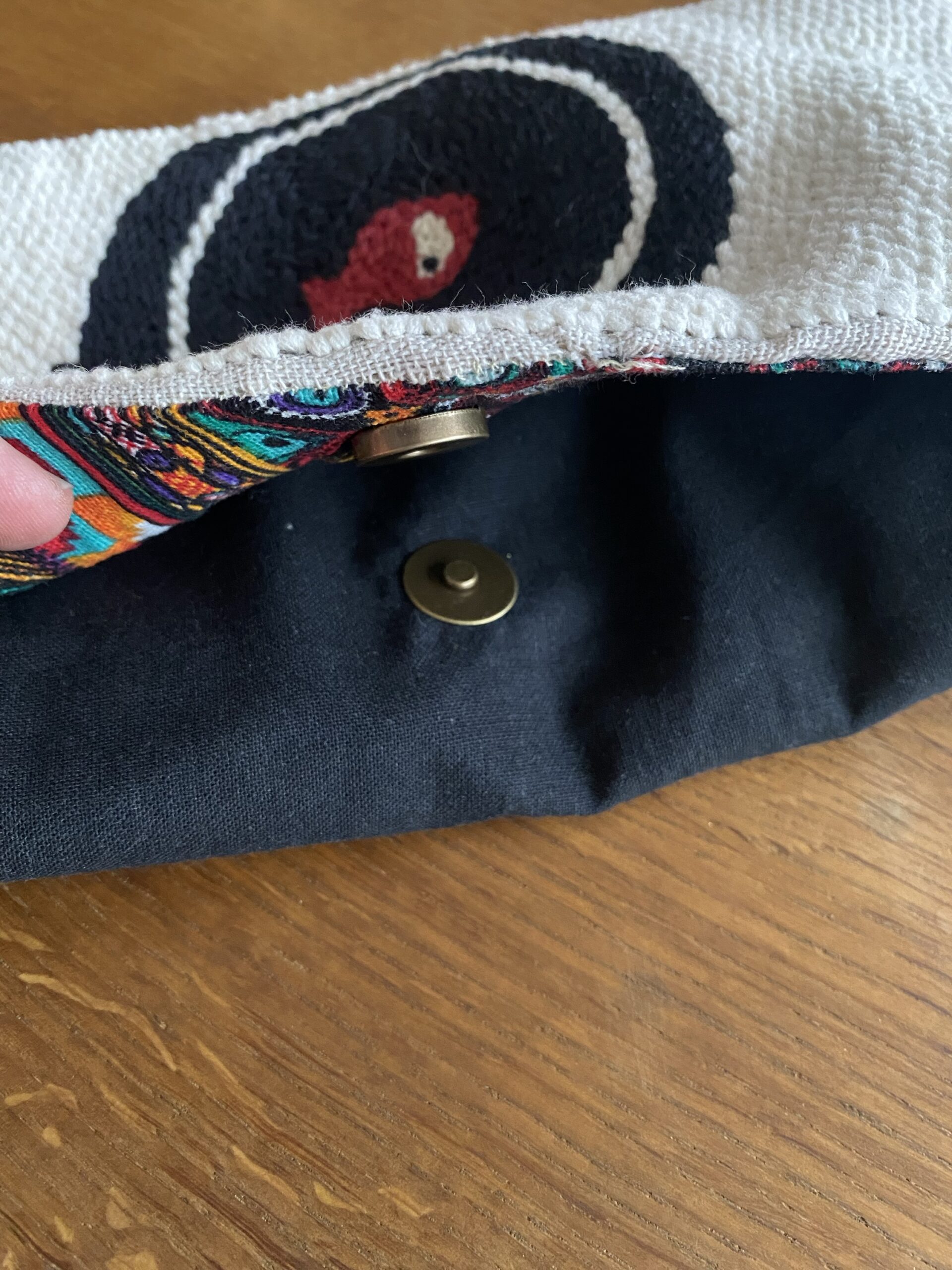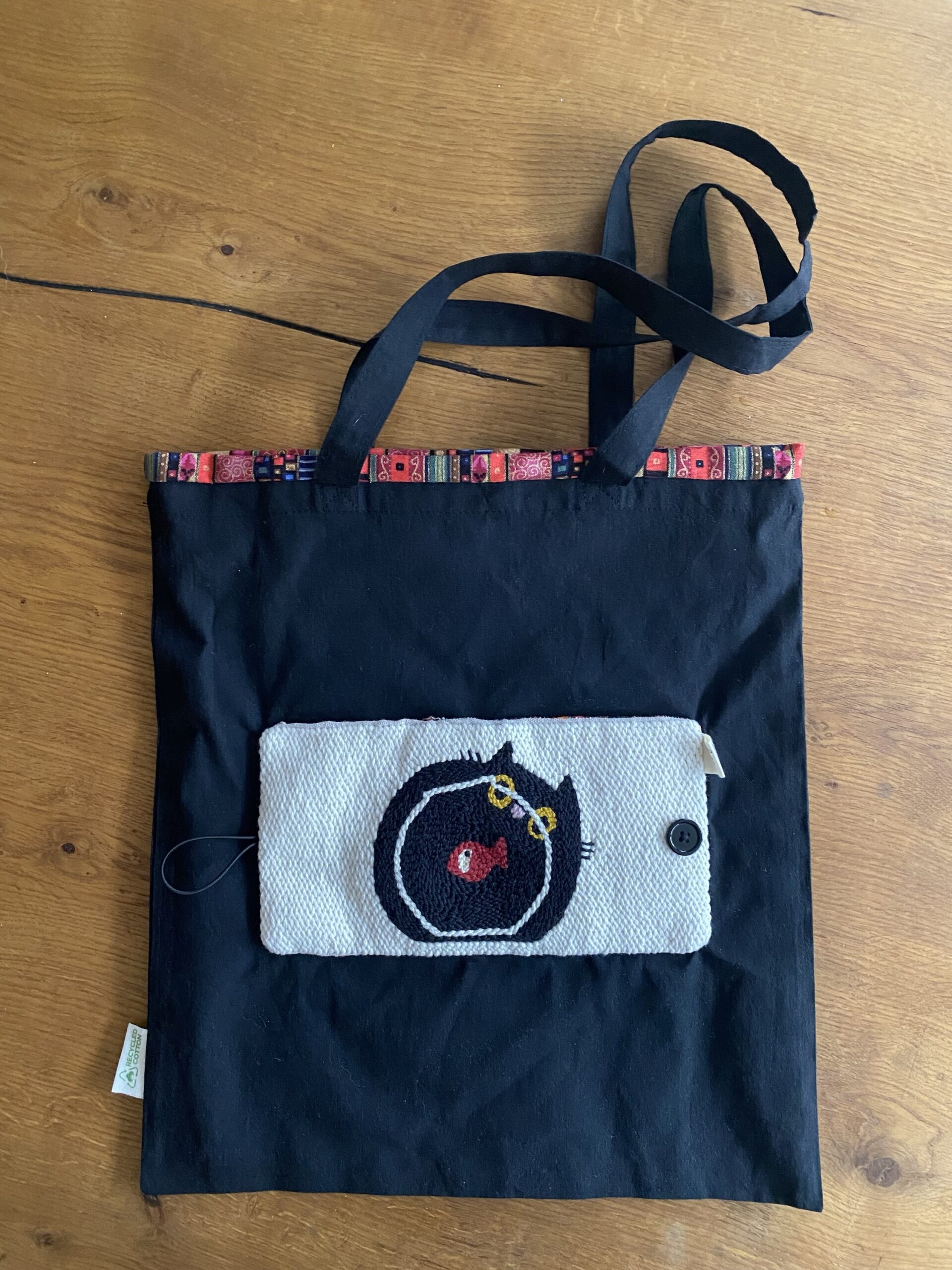 Ricamata a mano su tela in lino, Tote Bag richiudibile .