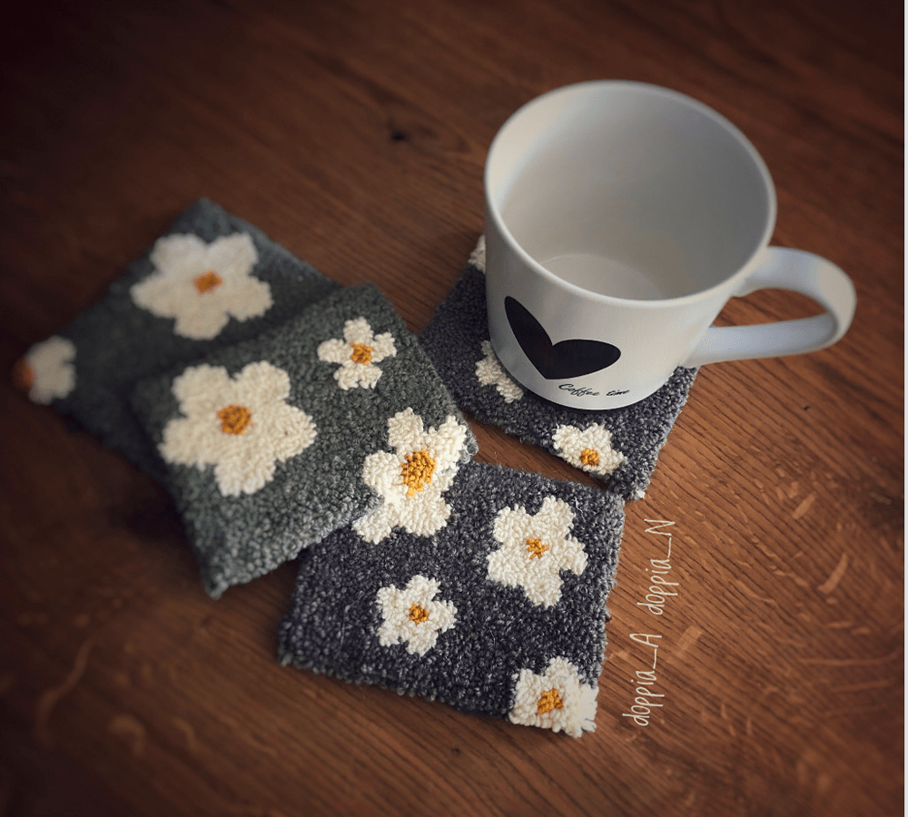 Sottobicchiere ricamato in lana e cotone – Punch Needle