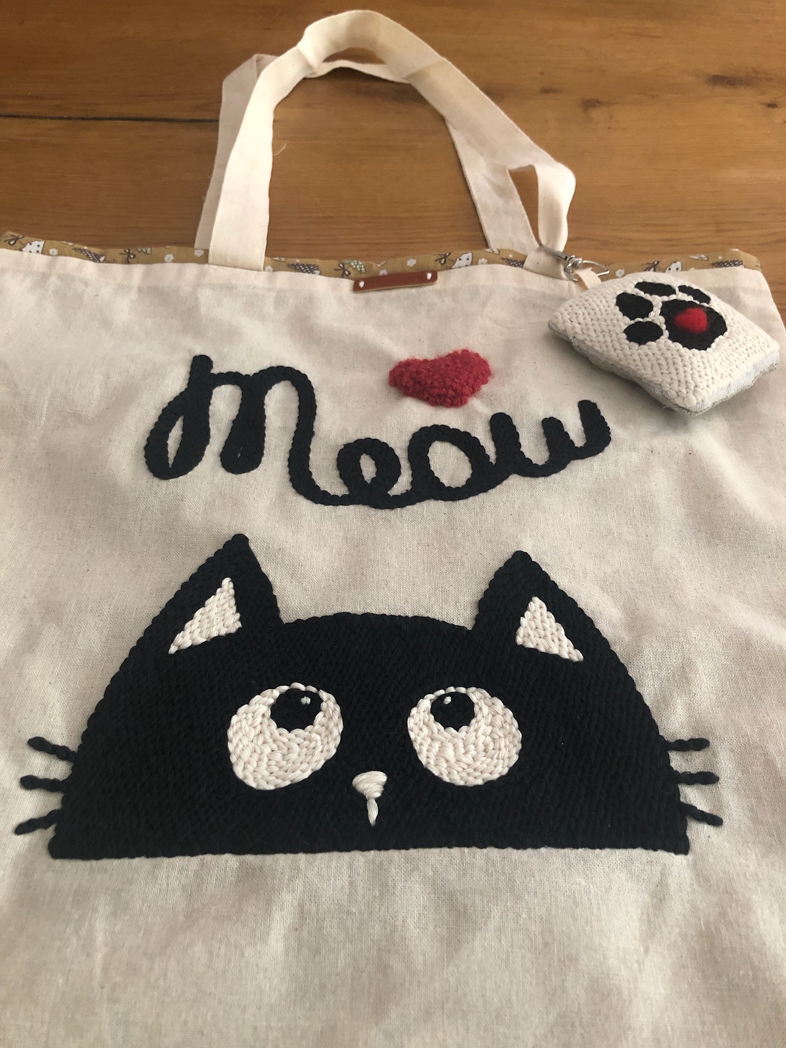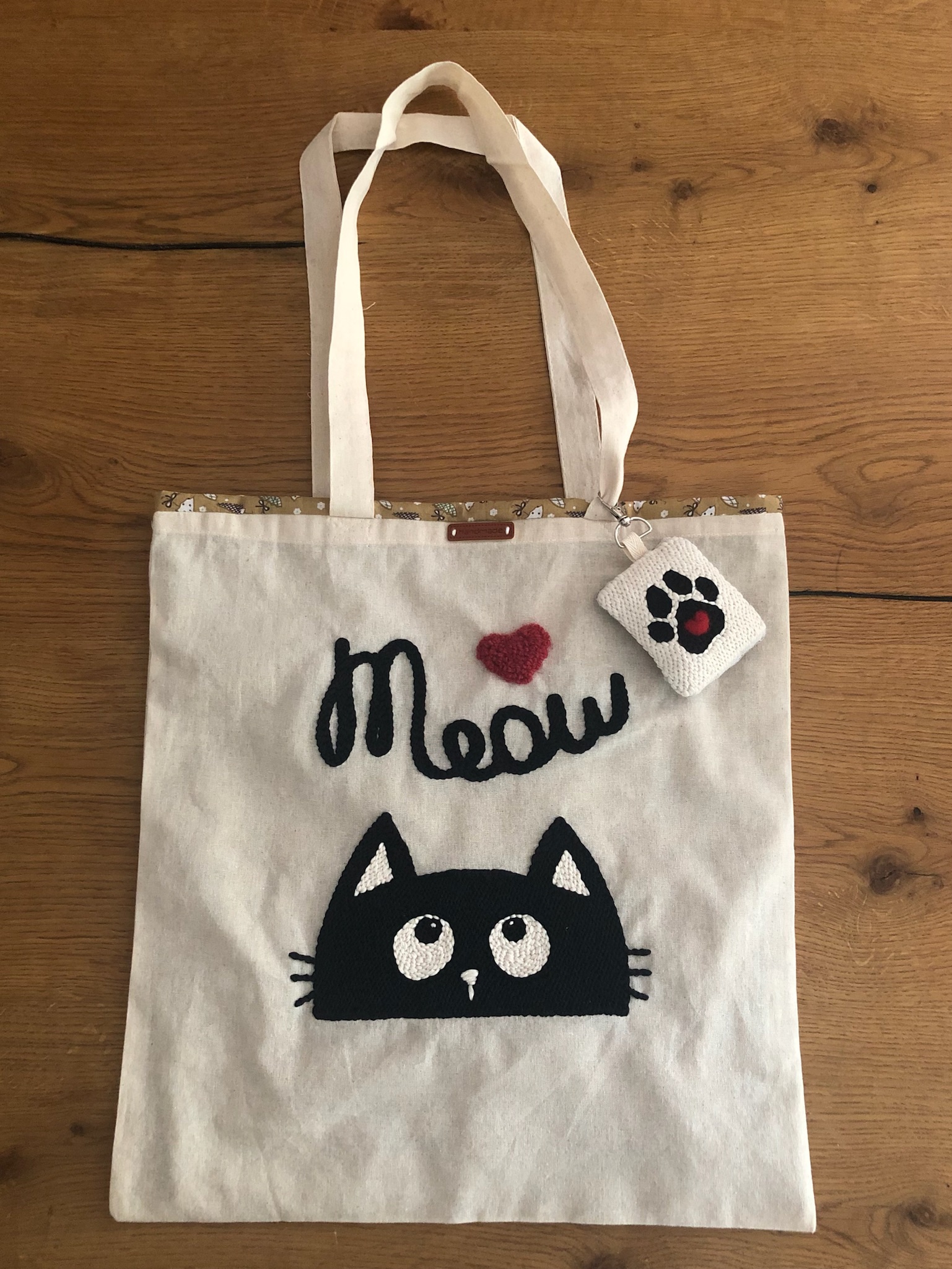 Borsa Tote BAG ricamata a mano in lana e cotone su tela, in busta di lino o di cotone