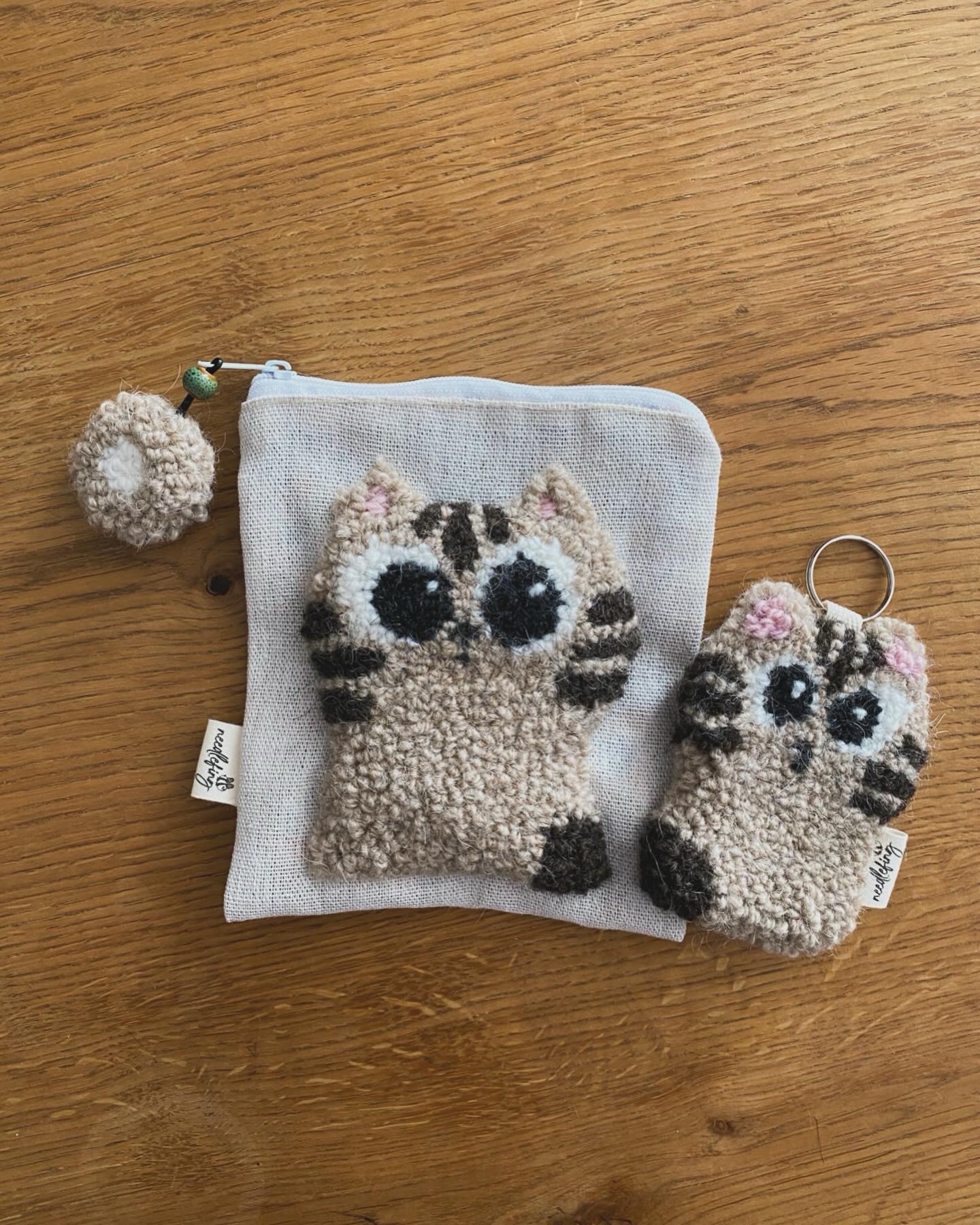 Astuccio ricamato in lana e cotone su tela, in busta di lino o di cotone – Punch Needle