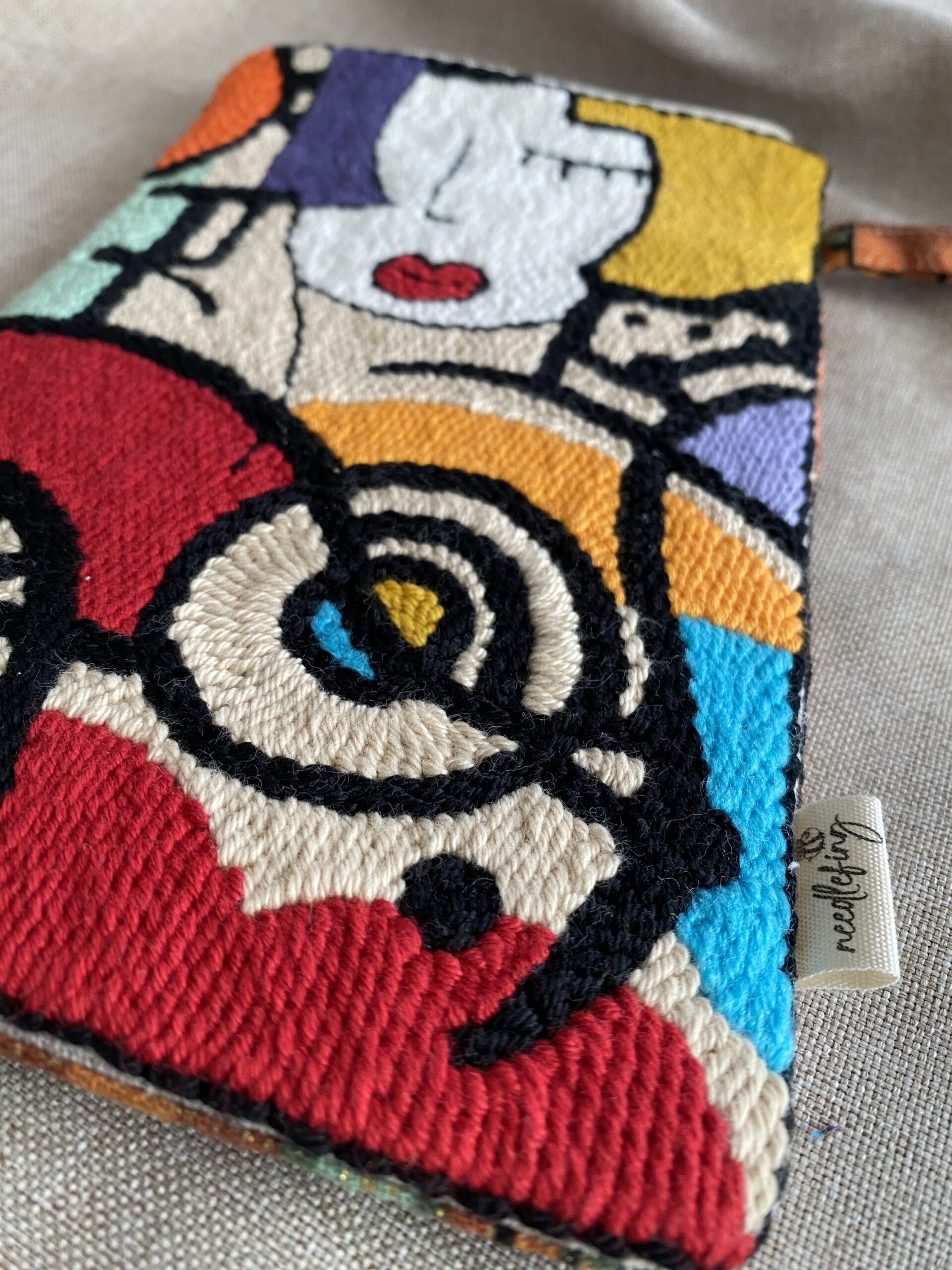 Astuccio realizzato a mano secondo la tecnica del Punch needle.