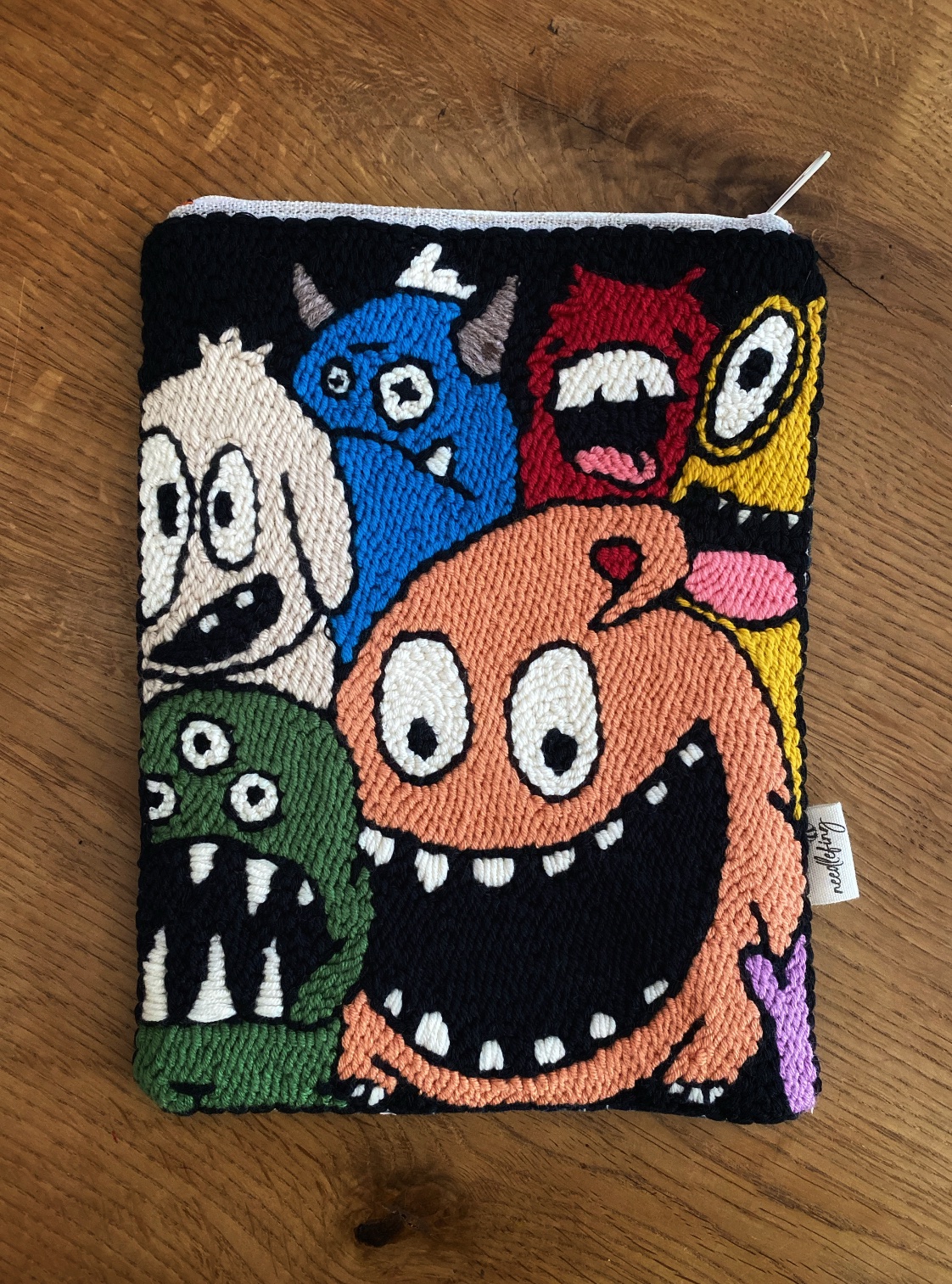 Astuccio realizzato a mano secondo la tecnica del Punch needle.