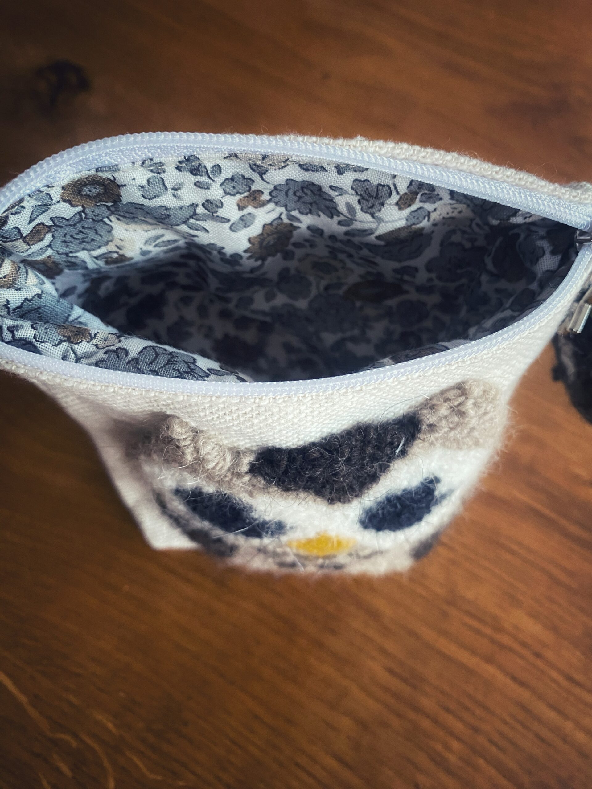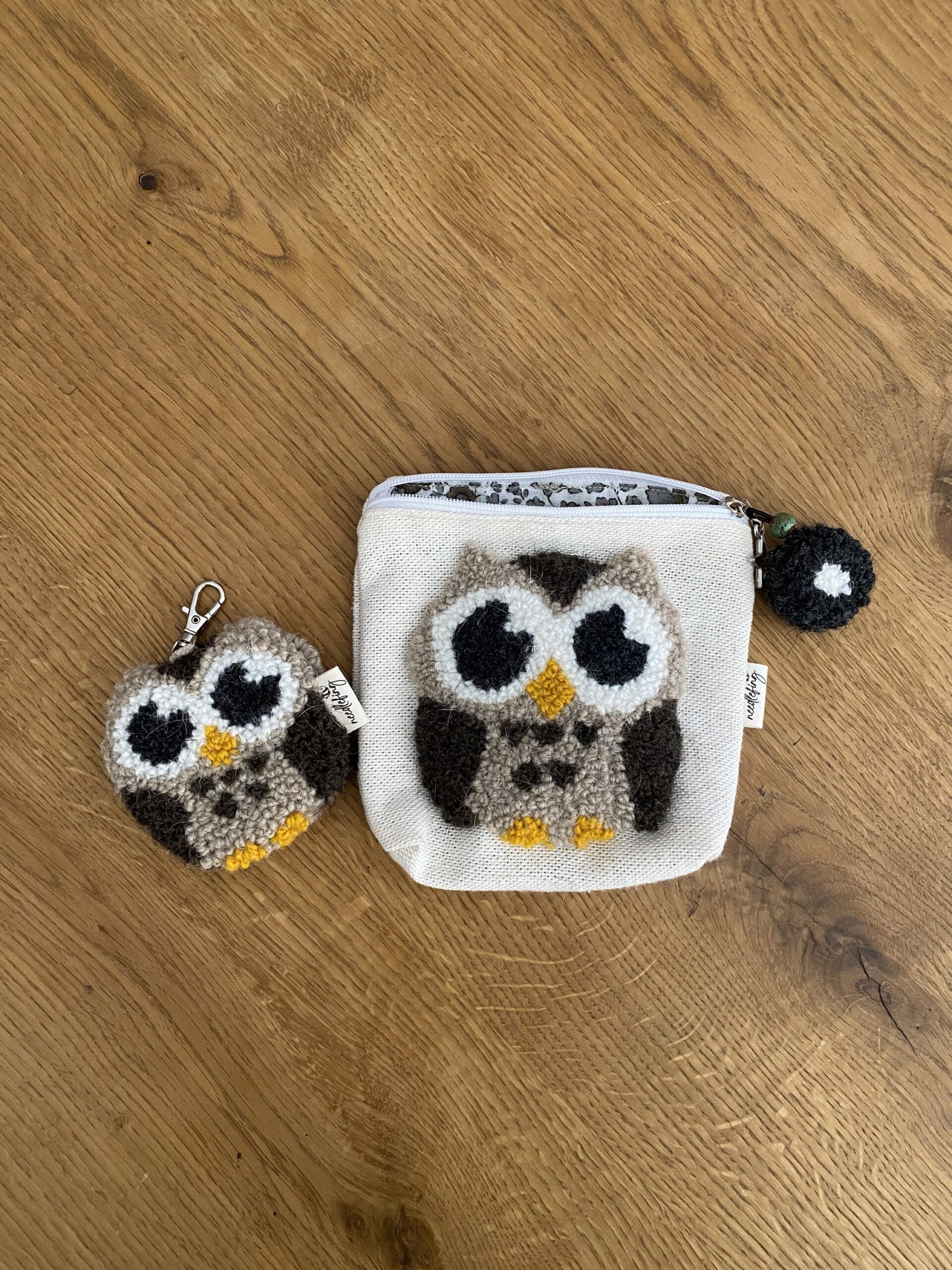 Piccolo astuccio con portachiavi ricamati in lana su tela in cotone