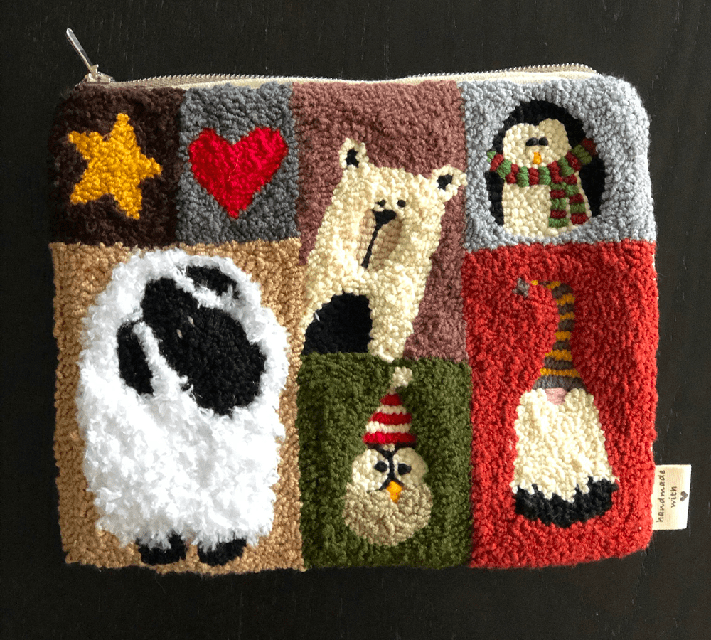 Astuccio ricamato in lana e cotone su tela, in busta di lino o di cotone – Punch Needle
