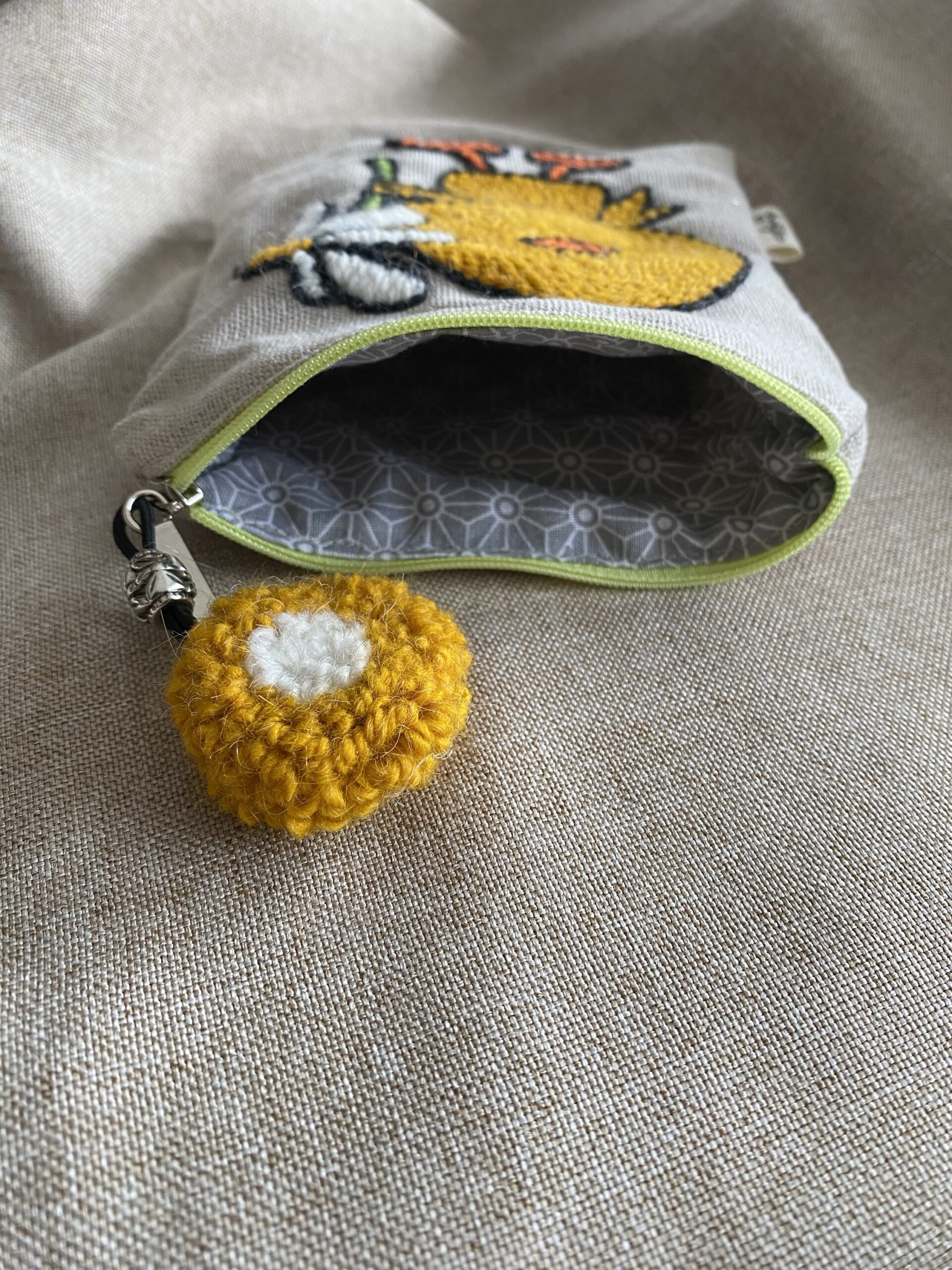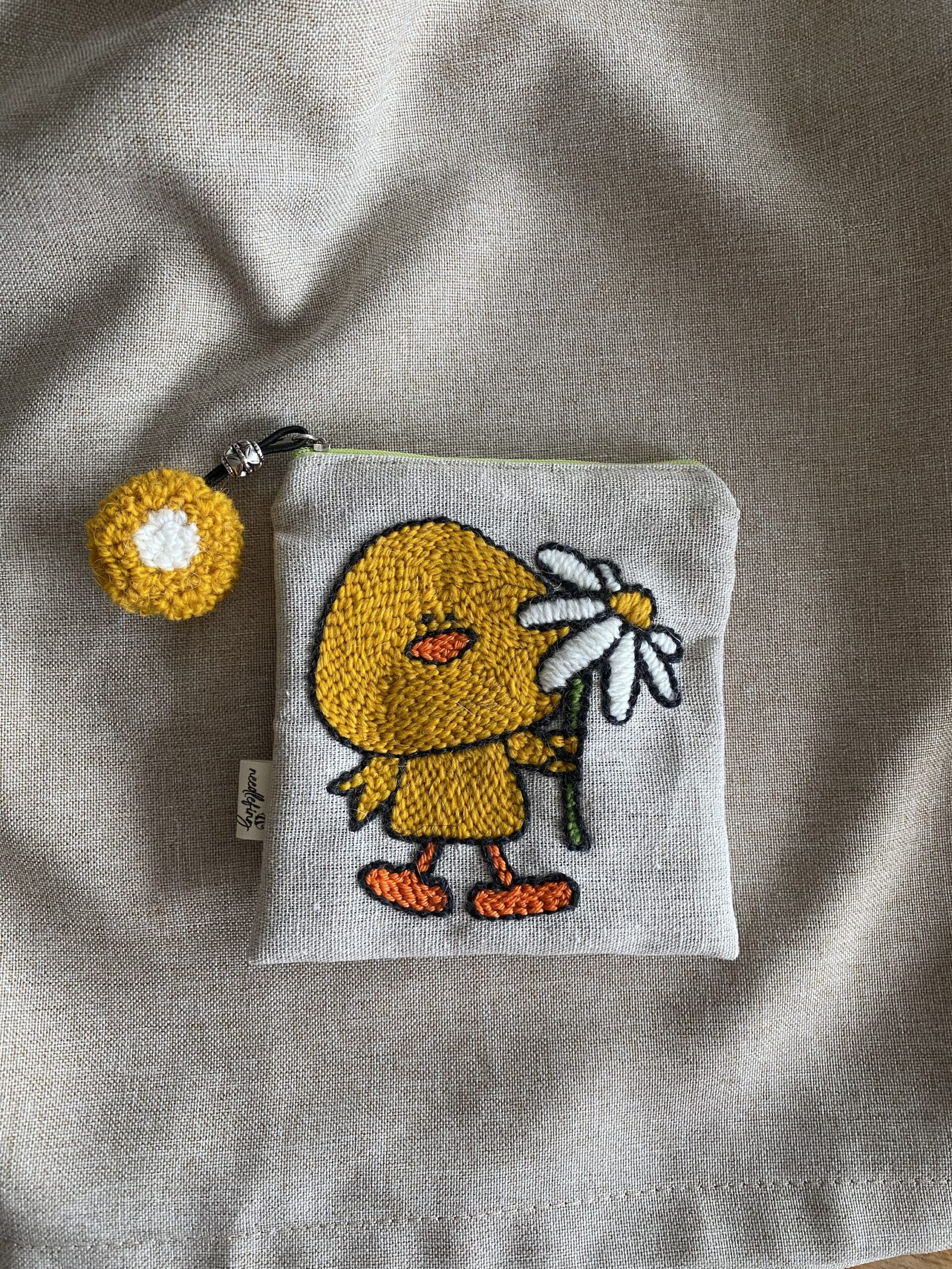 Astuccio ricamato in lana e cotone su tela, in busta di lino o di cotone – Punch Needle