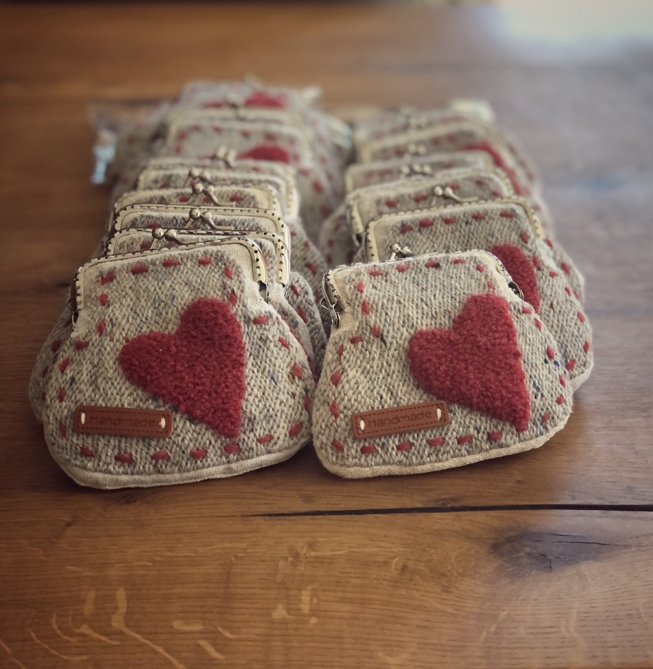 Portamonete ricamate in tela di lino