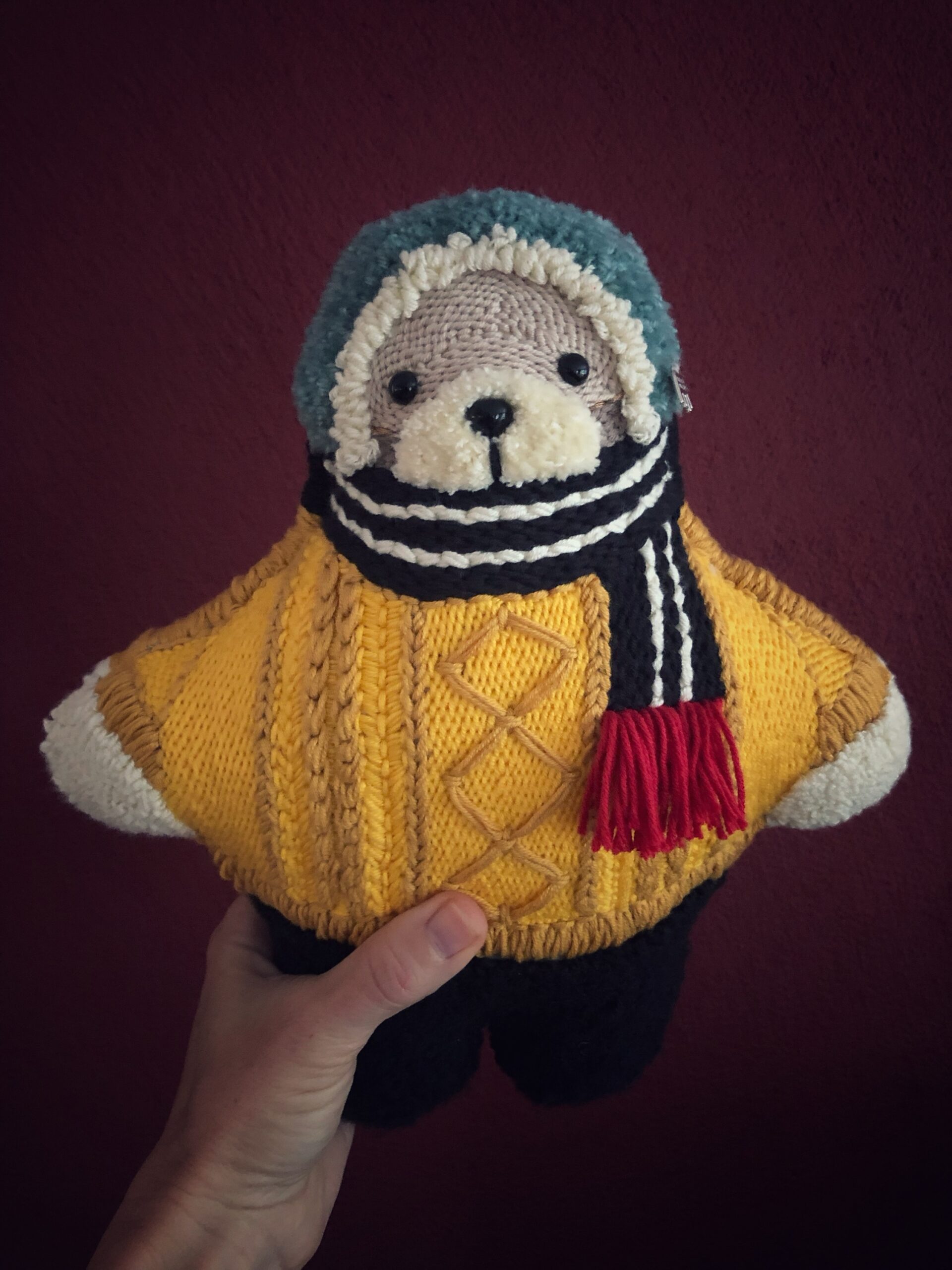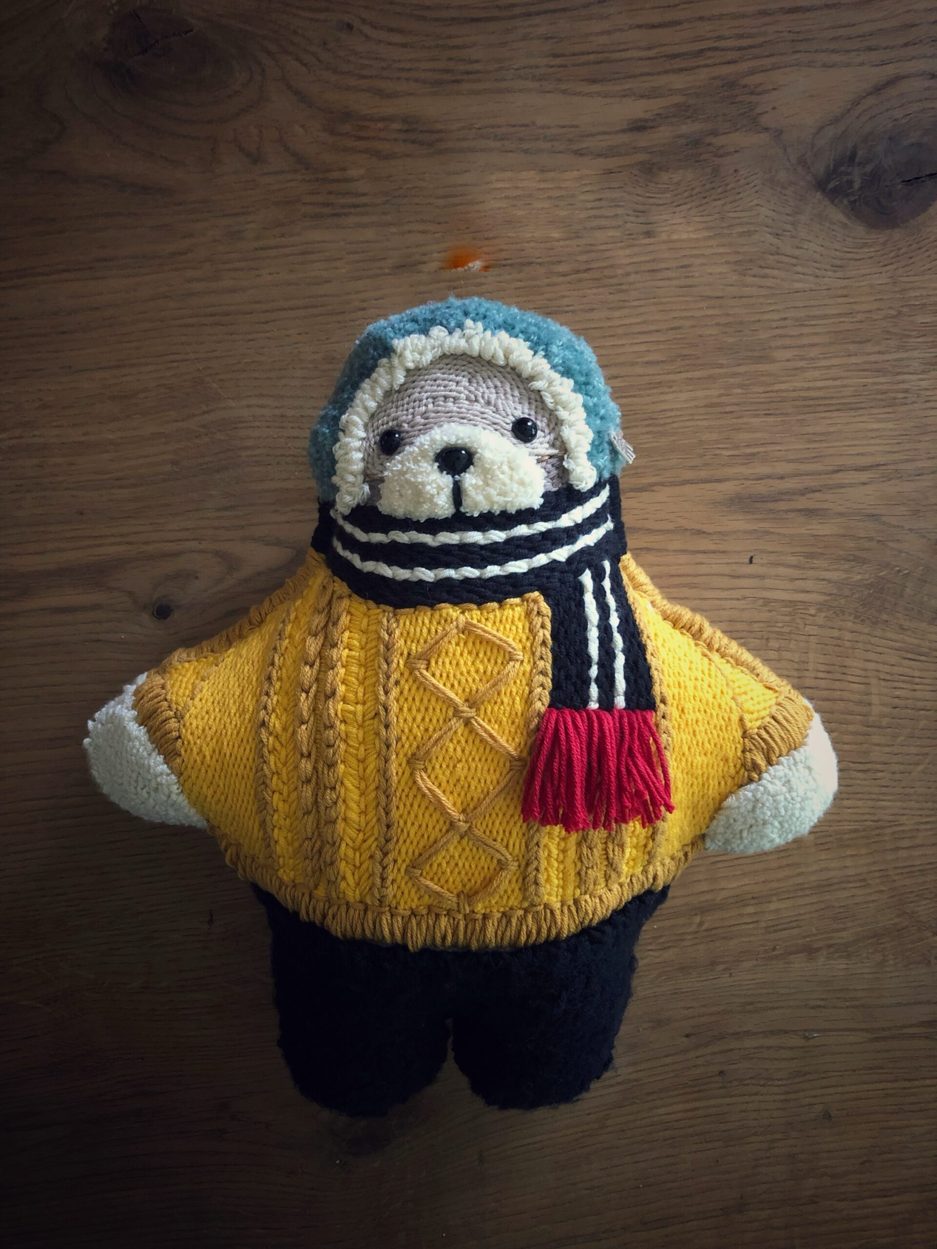 Pupazzo realizzato a mano con tecnica punch needle , cotone e lana