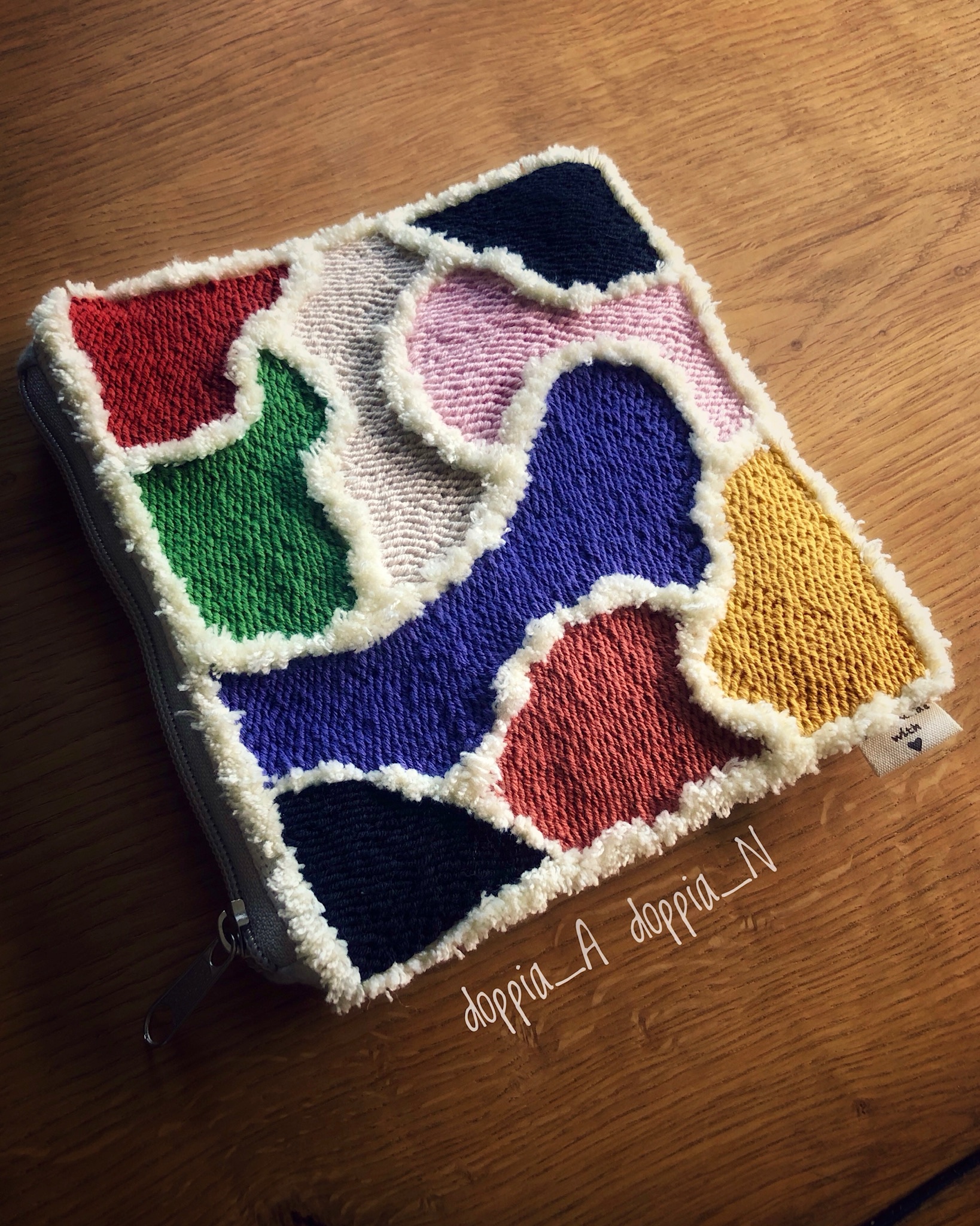 Astuccio ricamato in lana e cotone su tela, in busta di lino o di cotone – Punch Needle