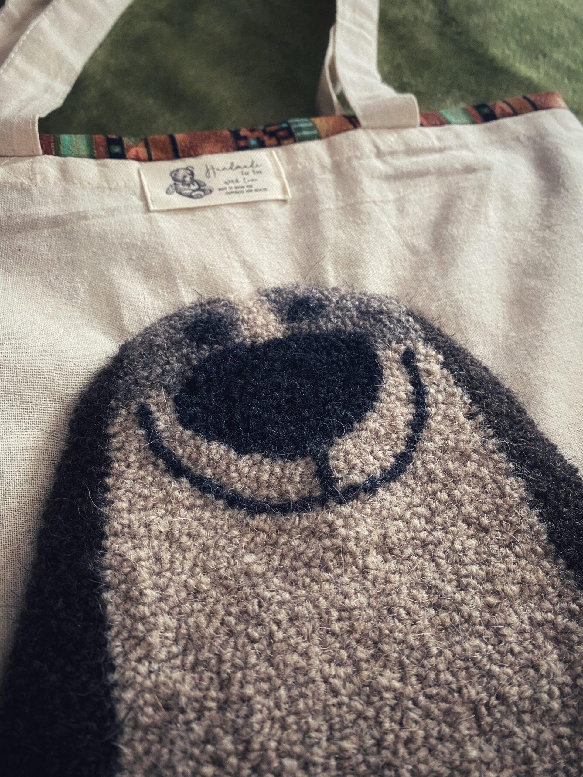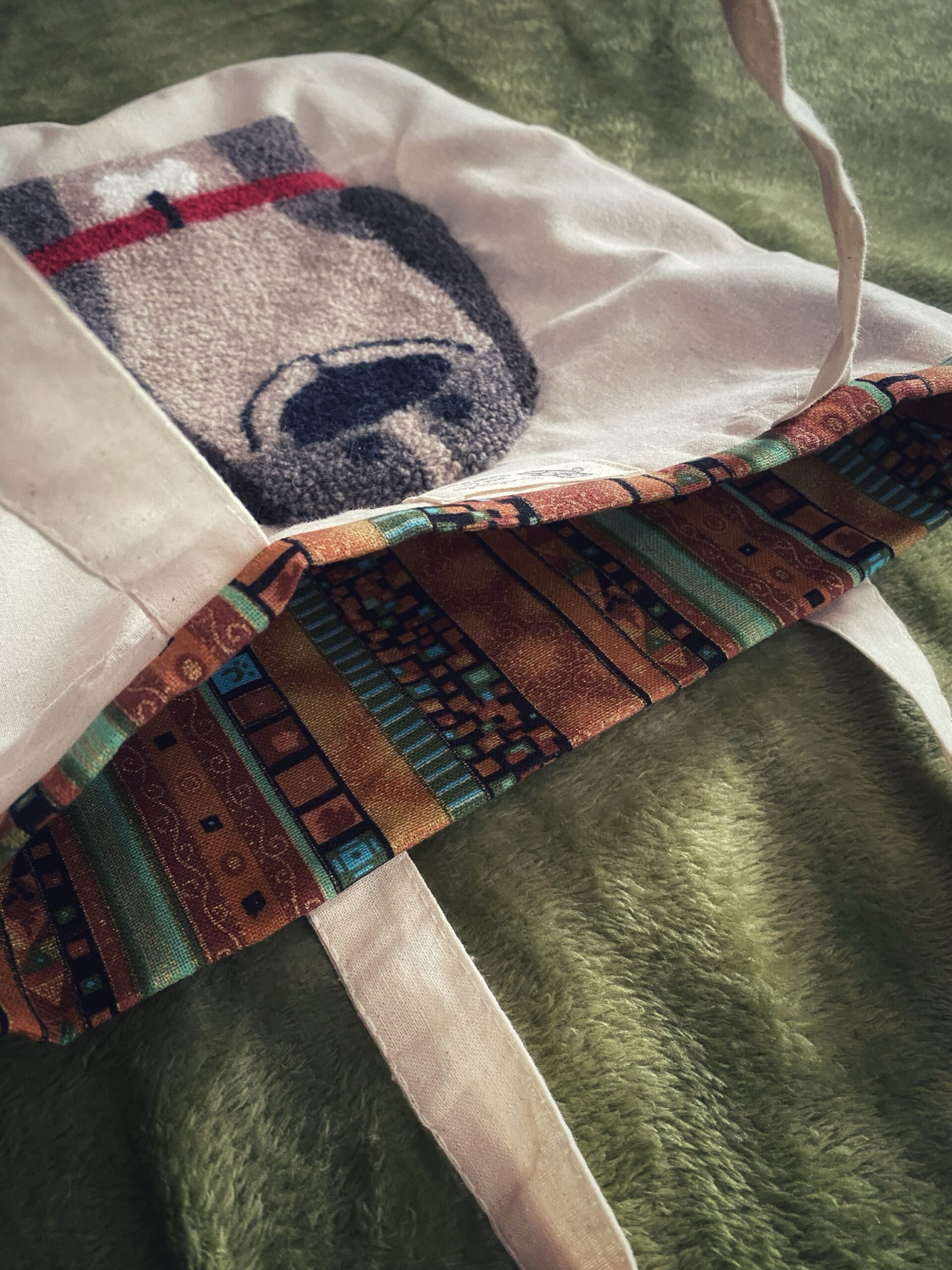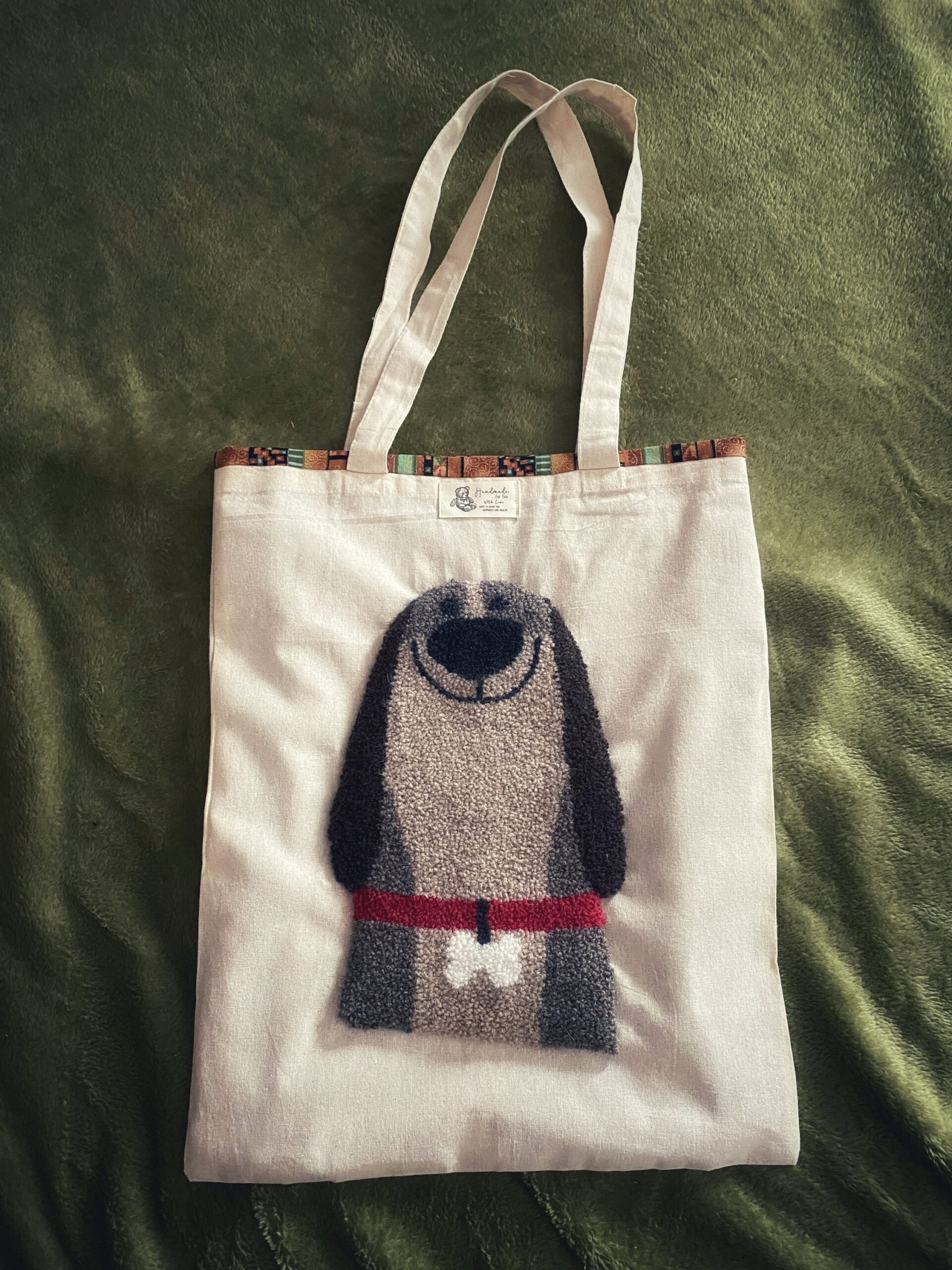 Borsa Tote BAG ricamata a mano in lana e cotone su tela, in busta di lino o di cotone