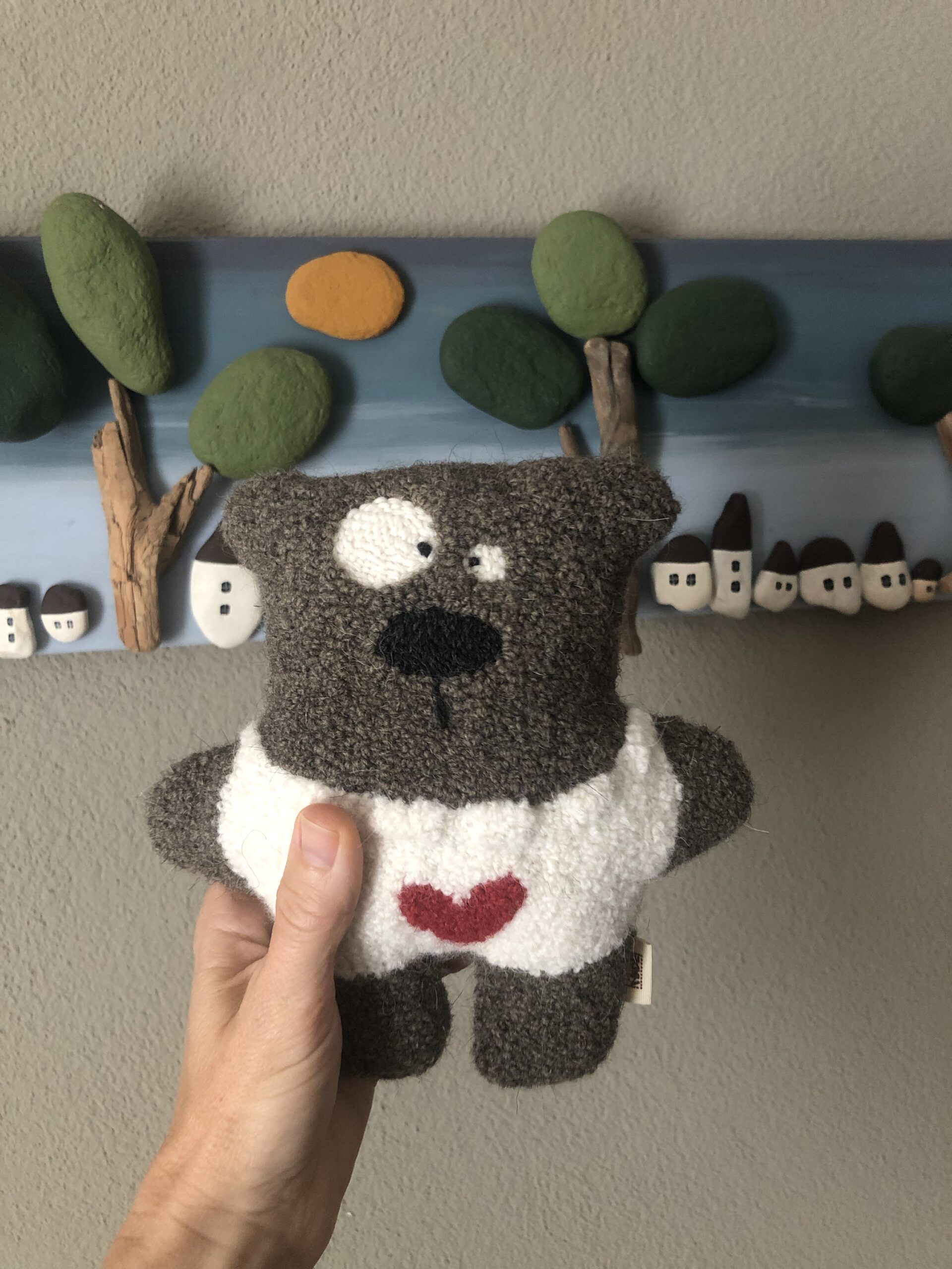 Pupazzo realizzato a mano con tecnica punch needle , cotone e lana