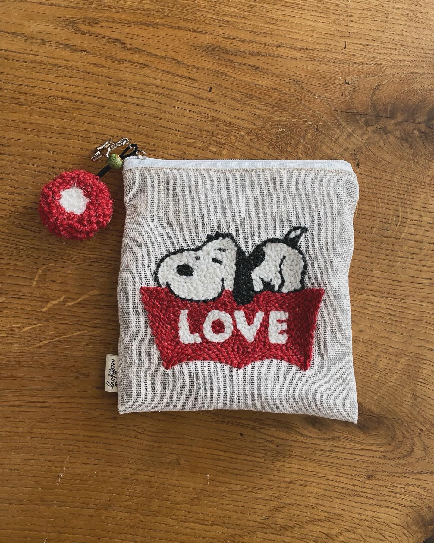 Piccolo Astuccio con cerniera ricamato in lana su tela in cotone