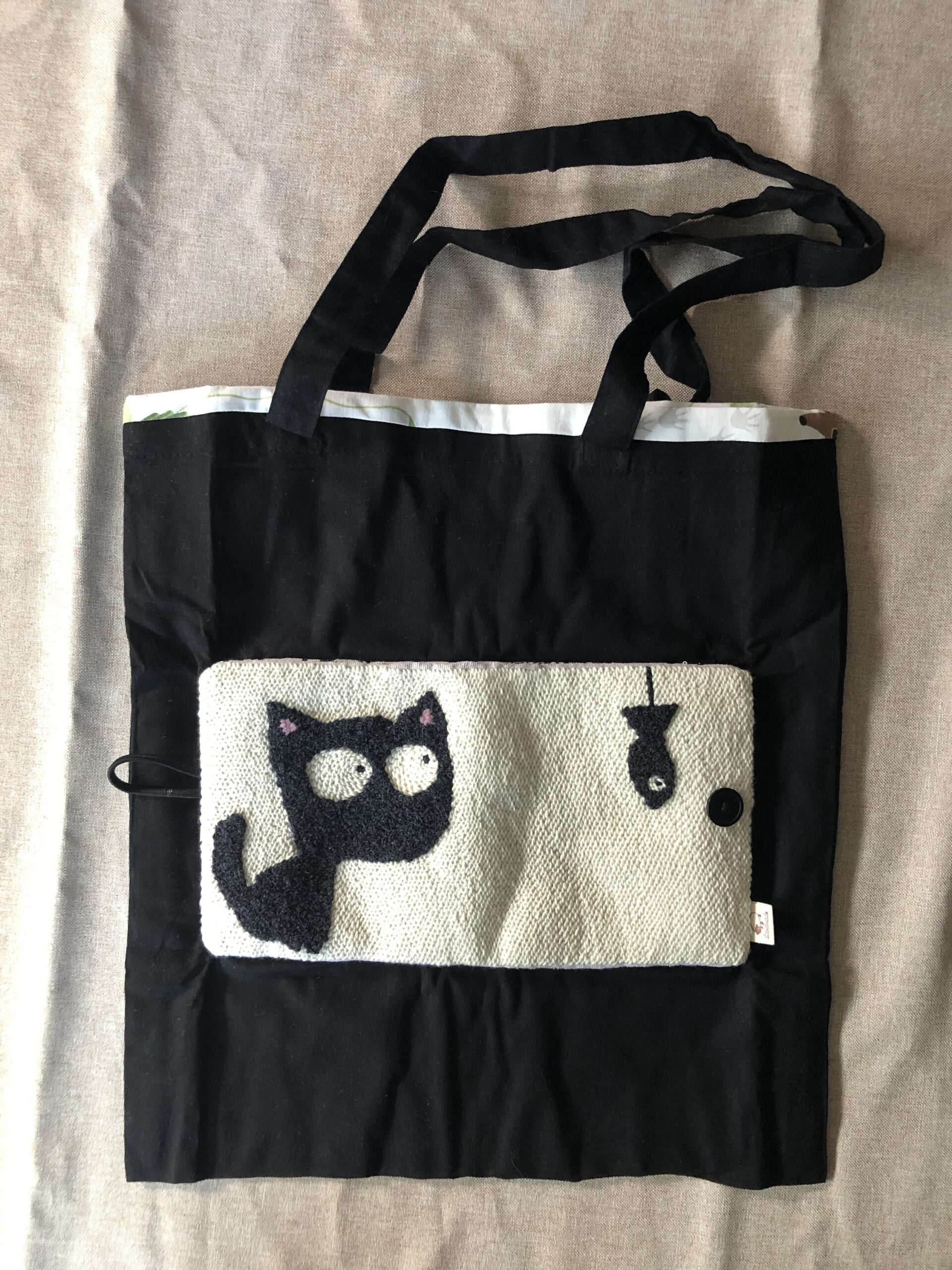 Borsa Tote BAG ripiegabile e ricamata a mano in lana su tela in busta di lino o di cotone.