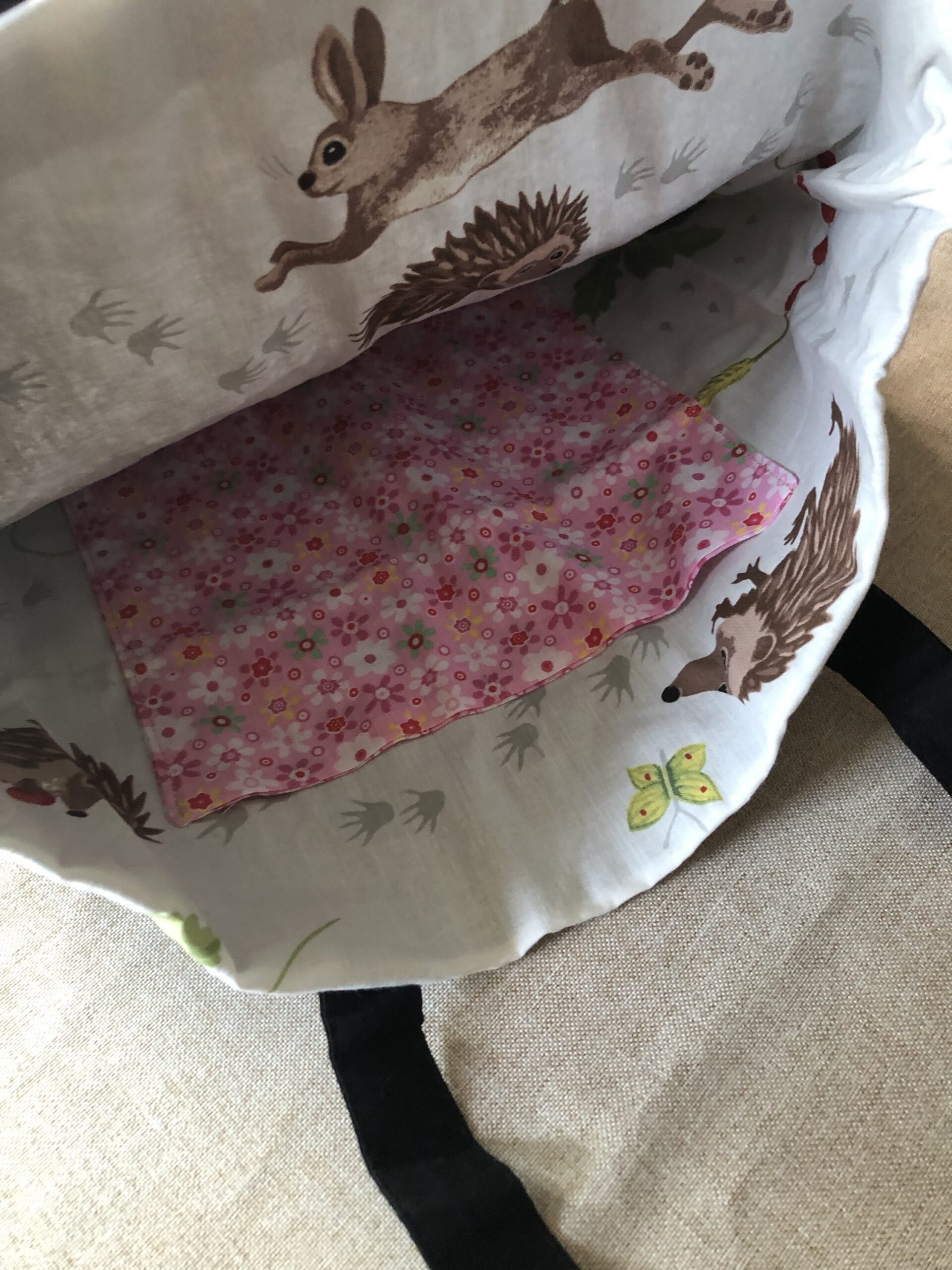 Tote Bag richiudibile, ricamata a mano su tela di lino.
