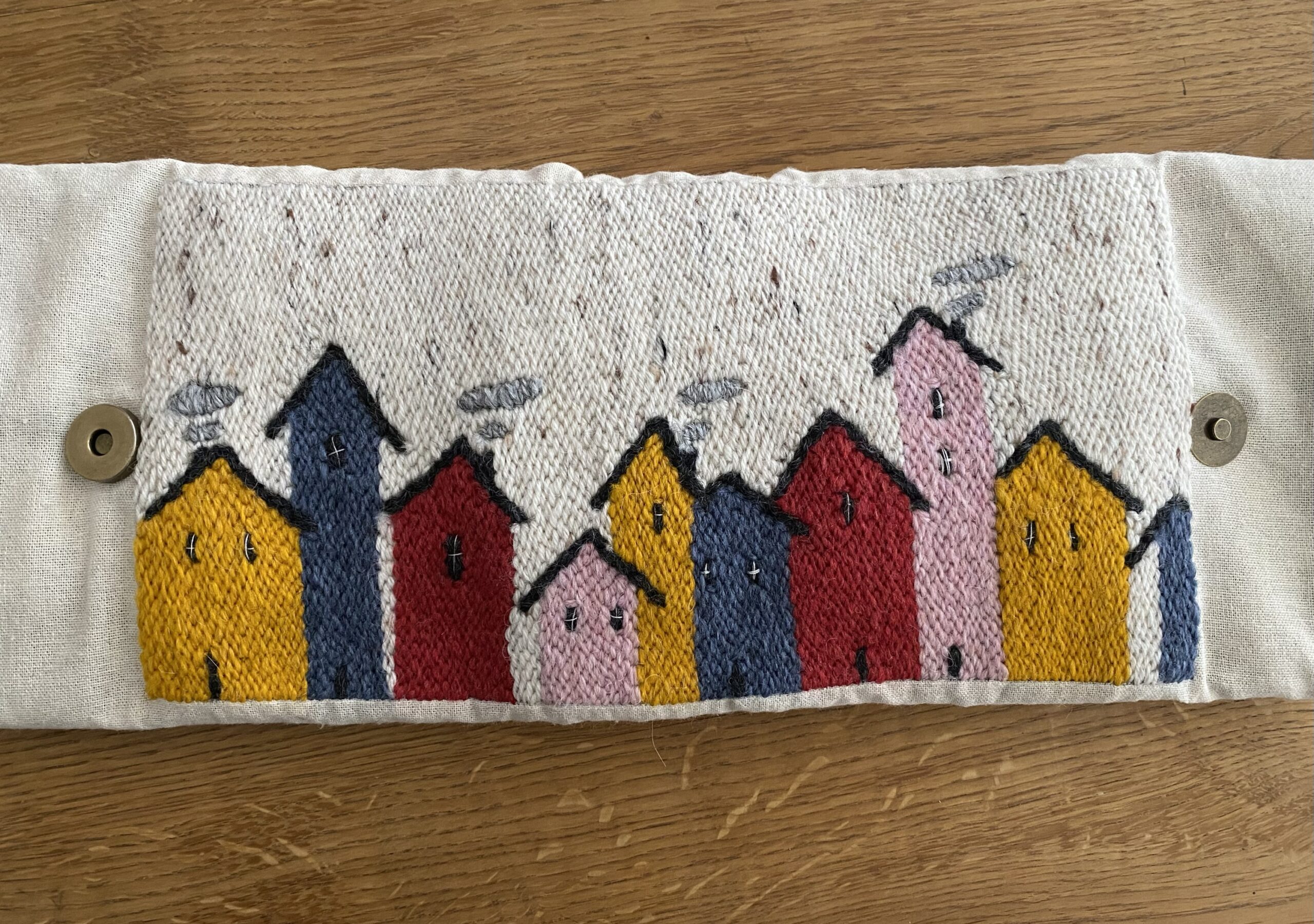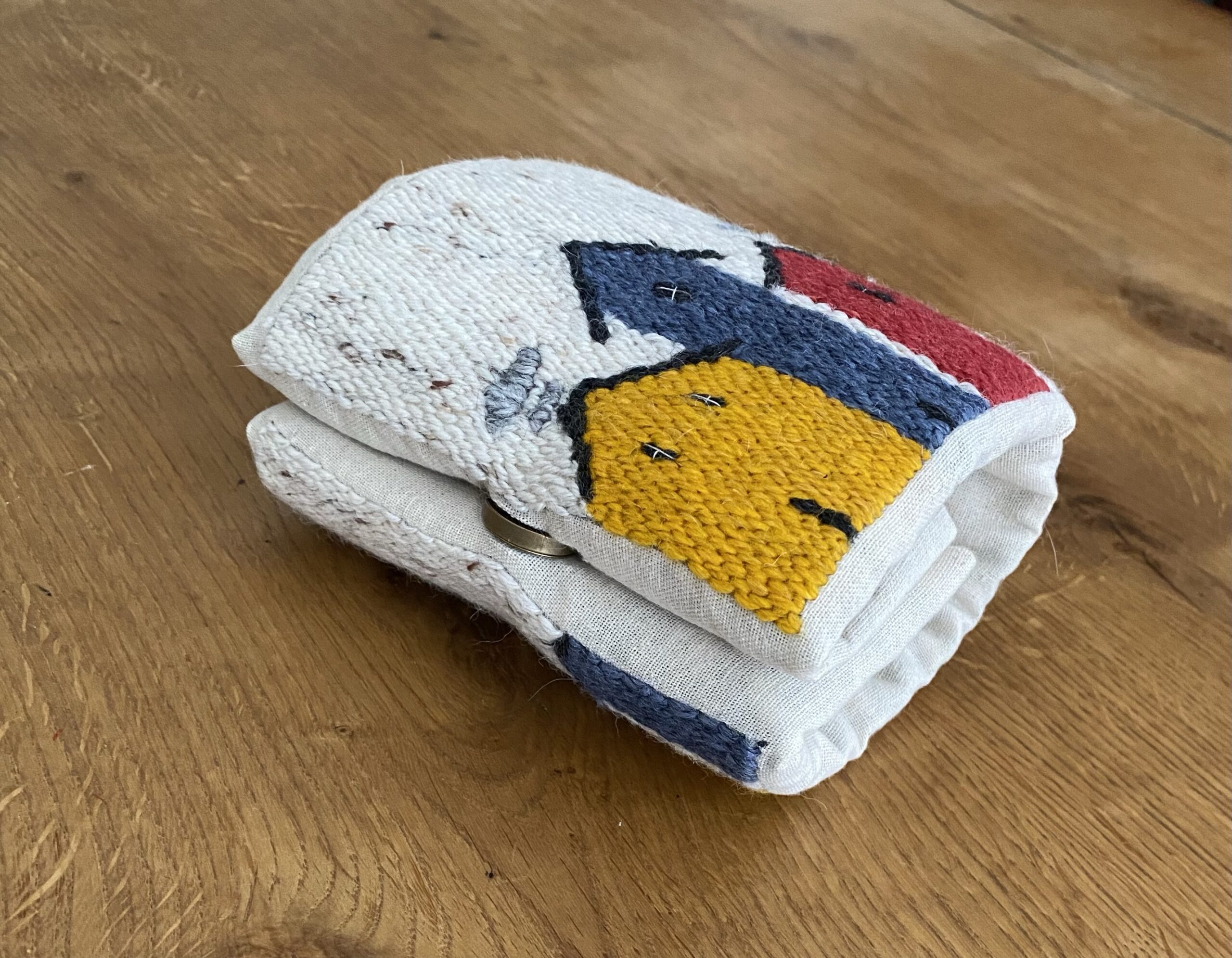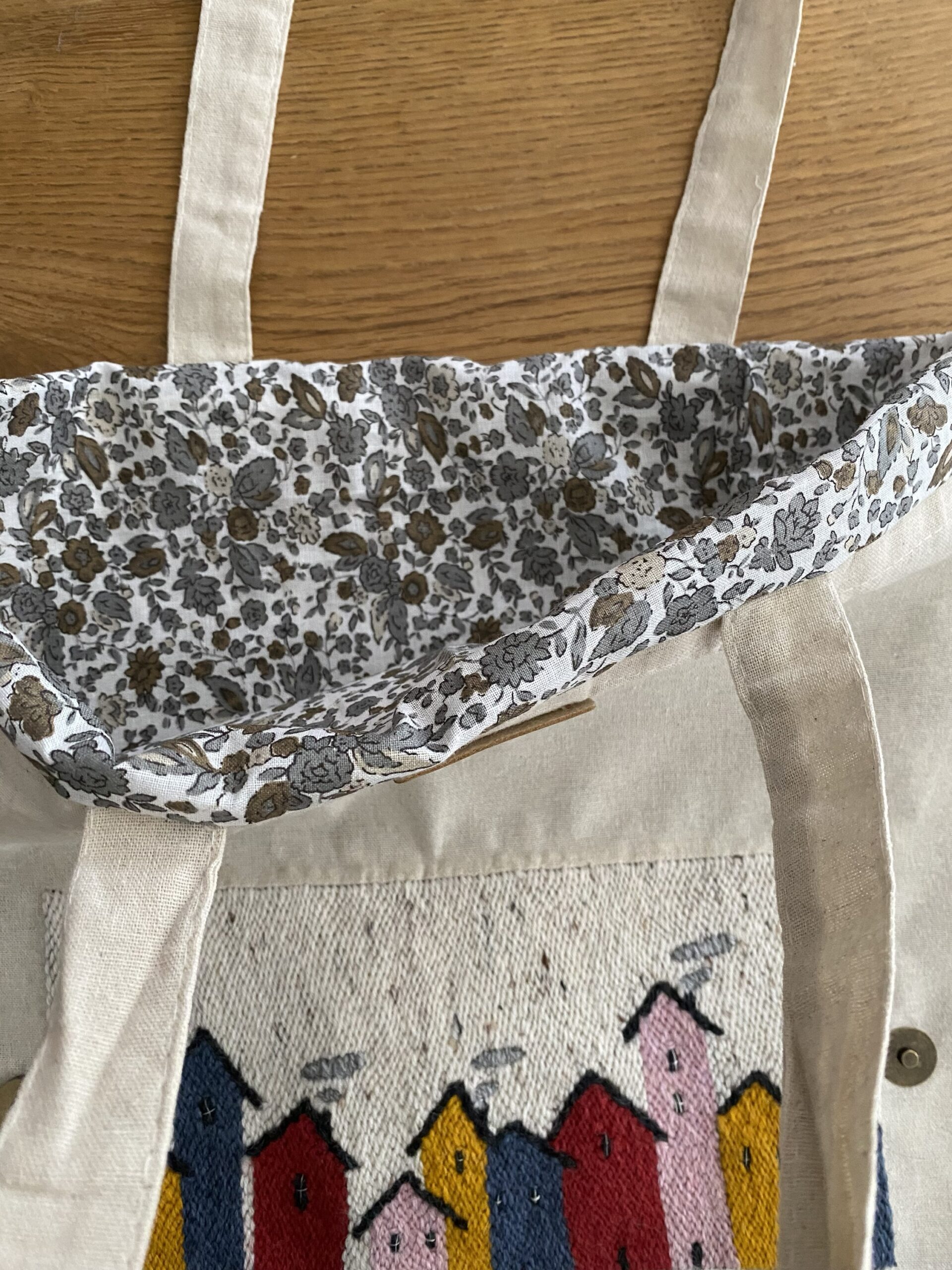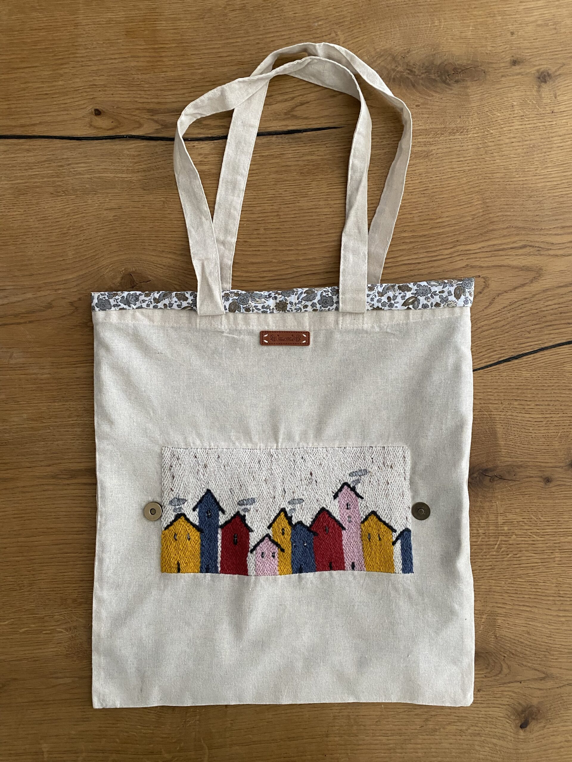 Tote Bag ripiegabile, ricamata a mano su tela di lino.