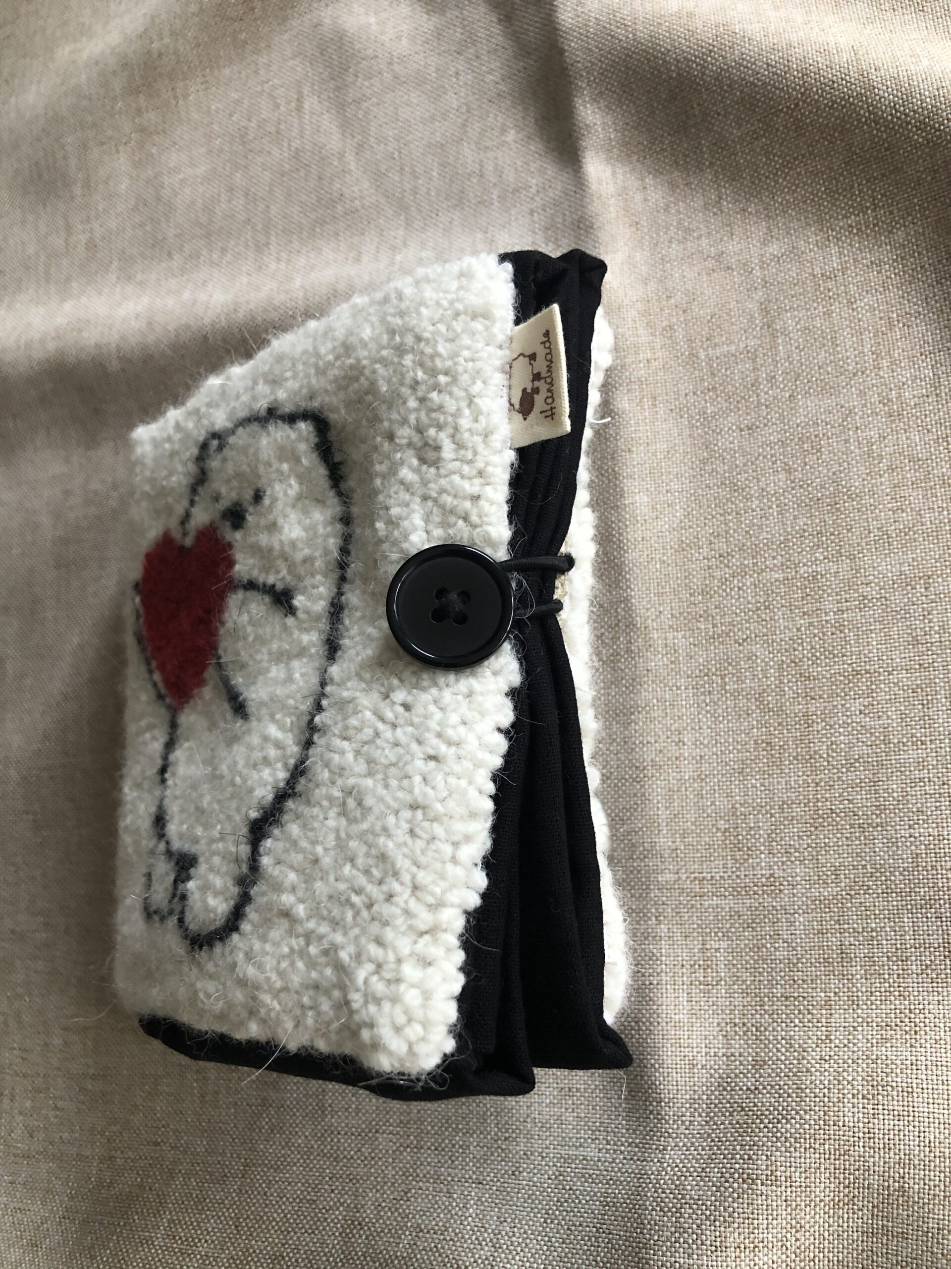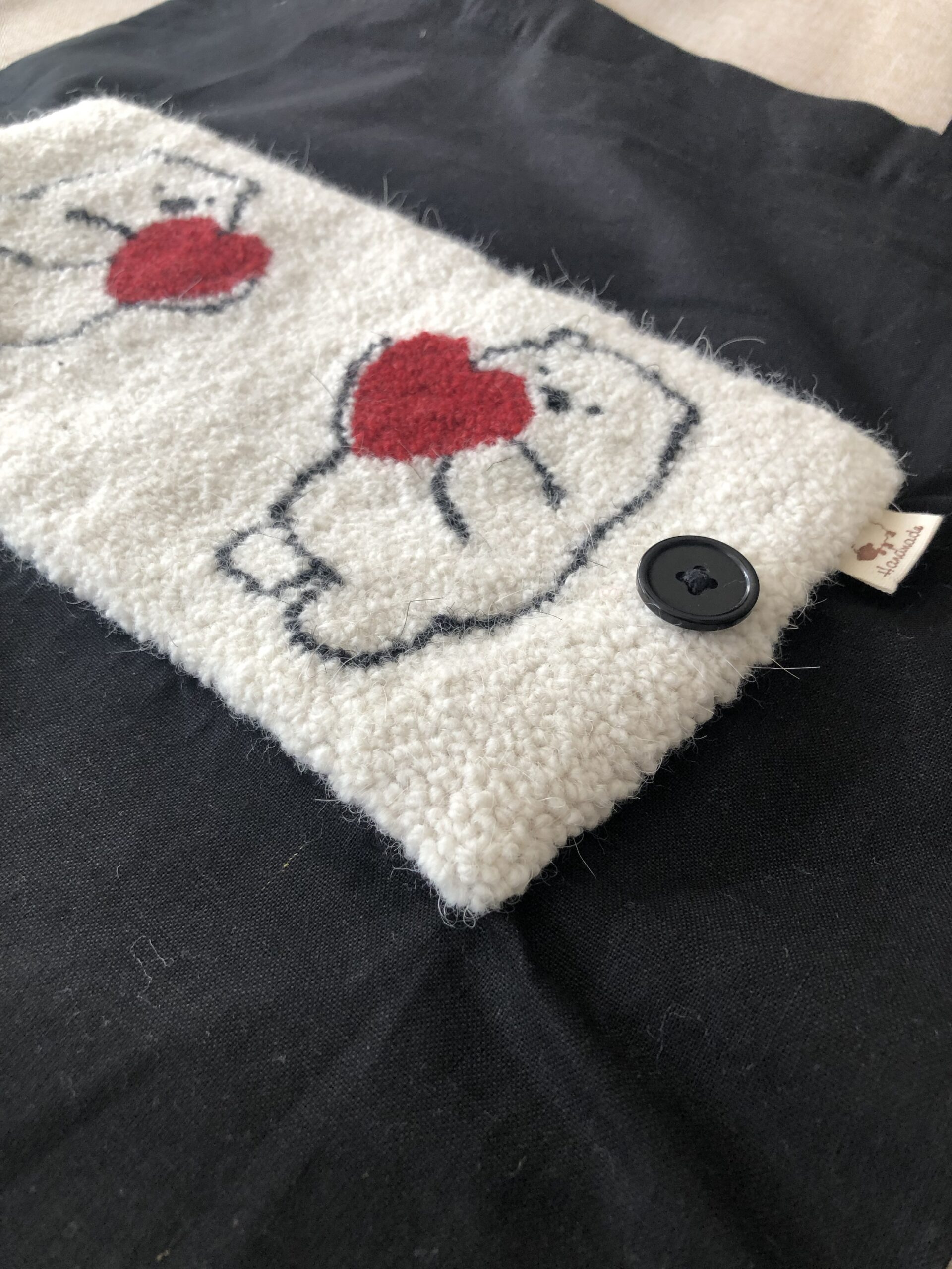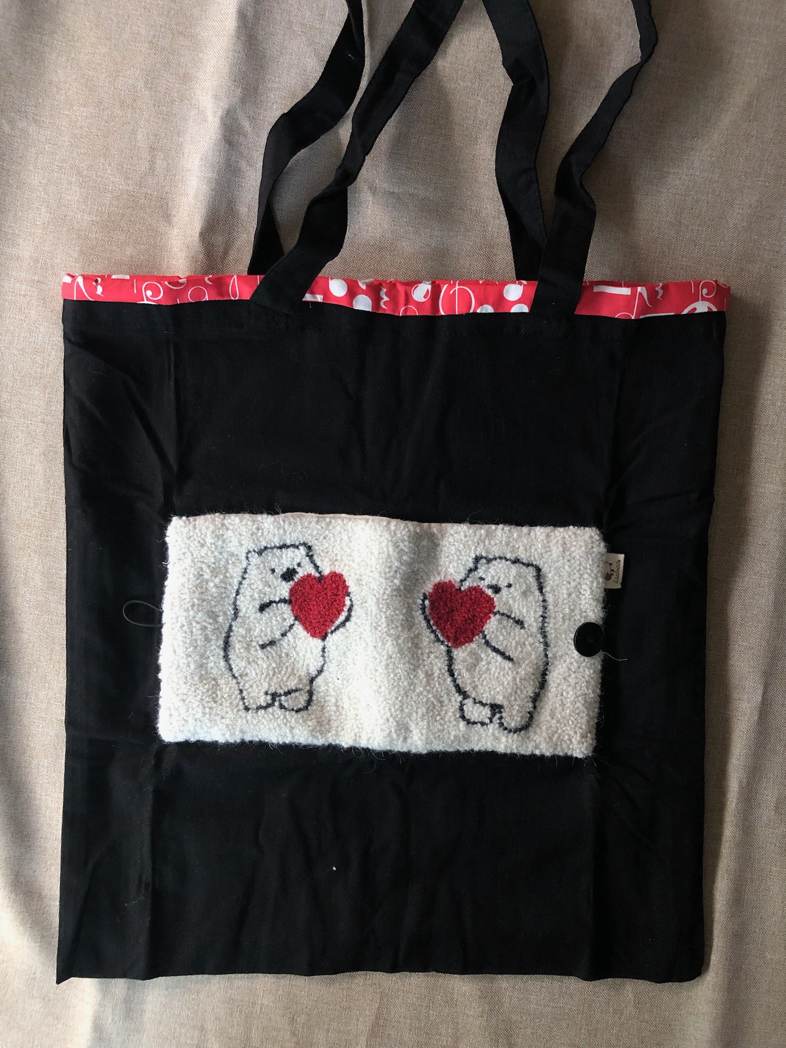 Borsa Tote BAG ripiegabile e ricamata a mano in lana su tela in busta di lino o di cotone.