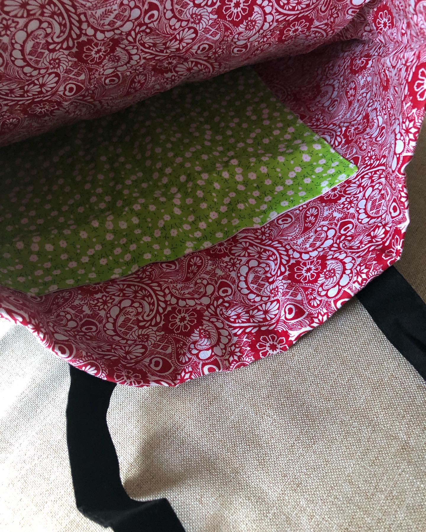 Borsa Tote BAG ripiegabile e ricamata a mano in lana su tela in busta di lino o di cotone.
