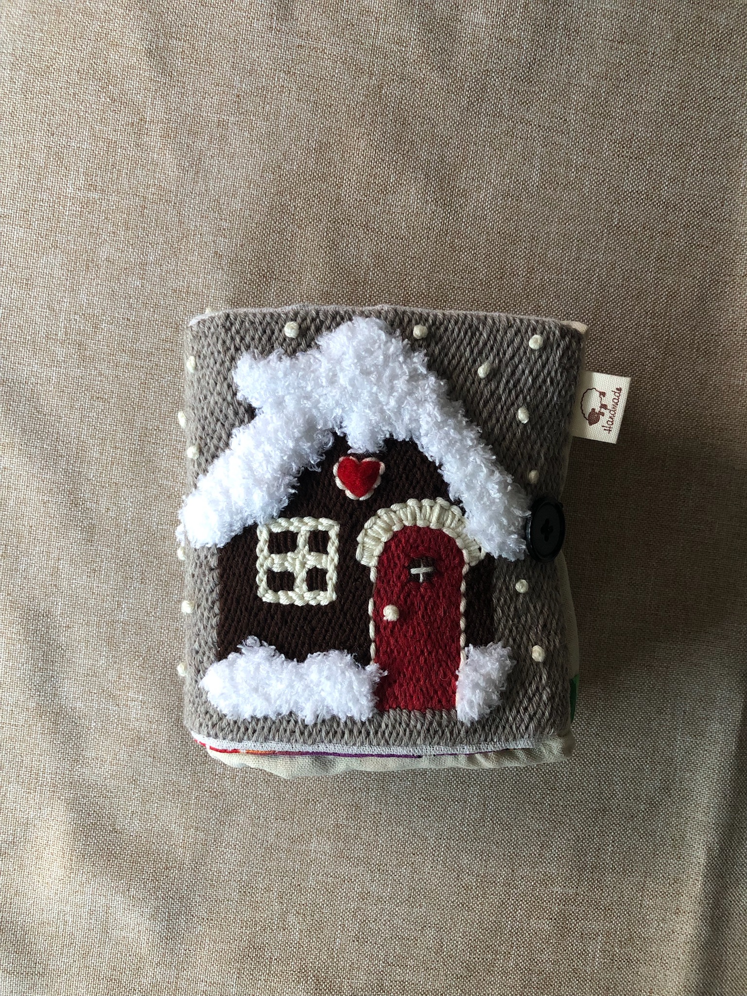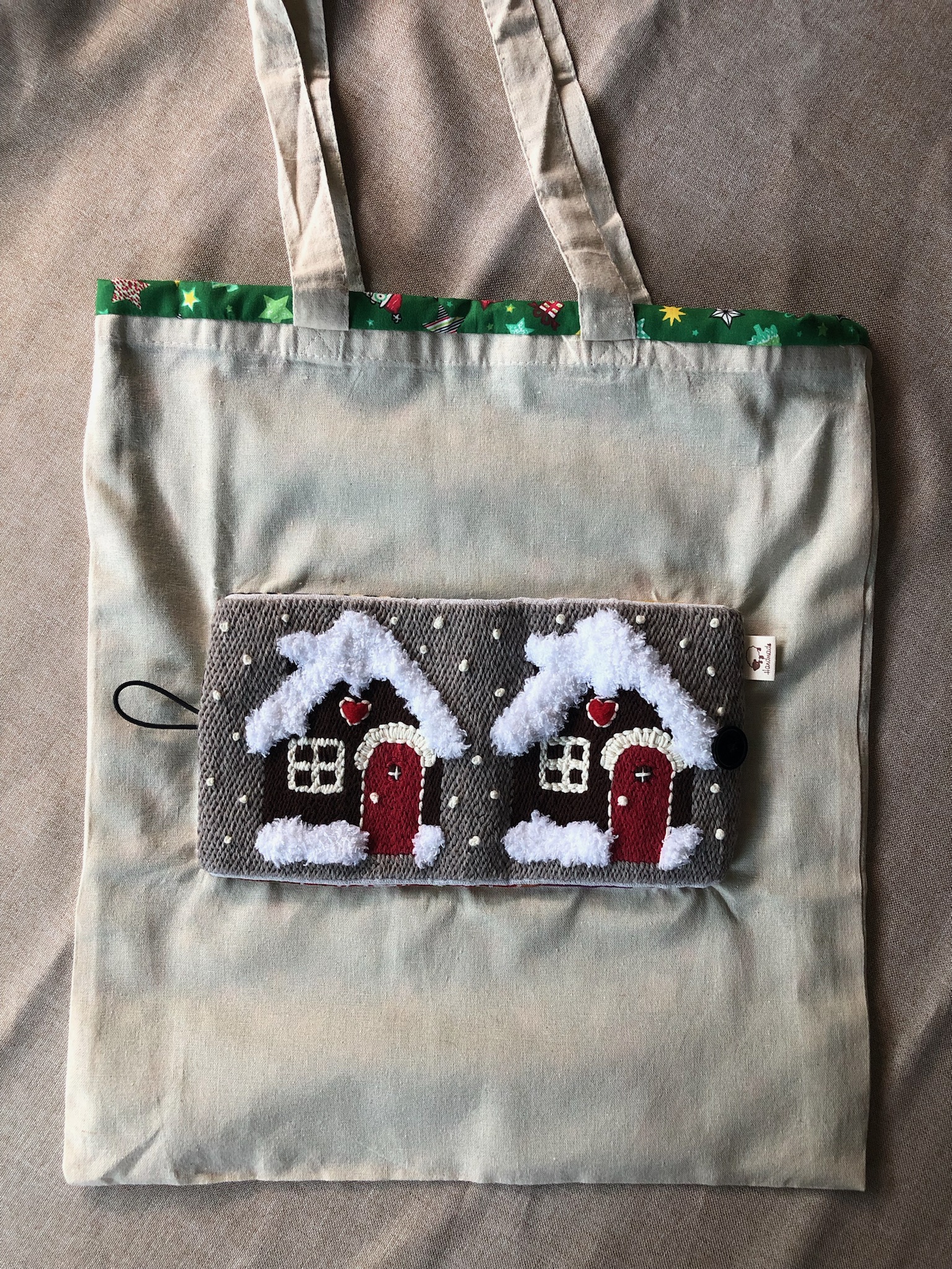 Borsa Tote BAG ripiegabile e ricamata a mano in lana su tela in busta di lino o di cotone.