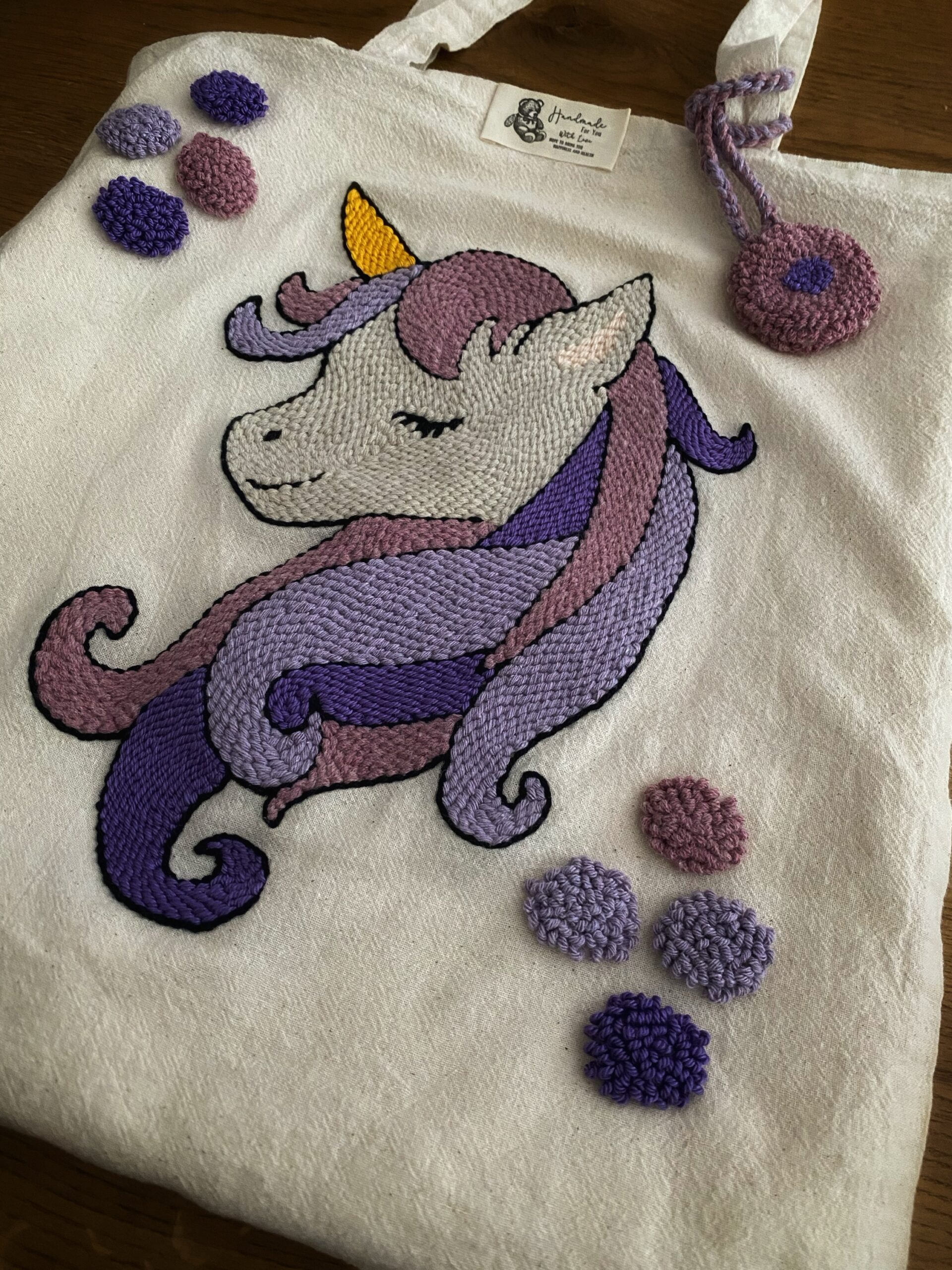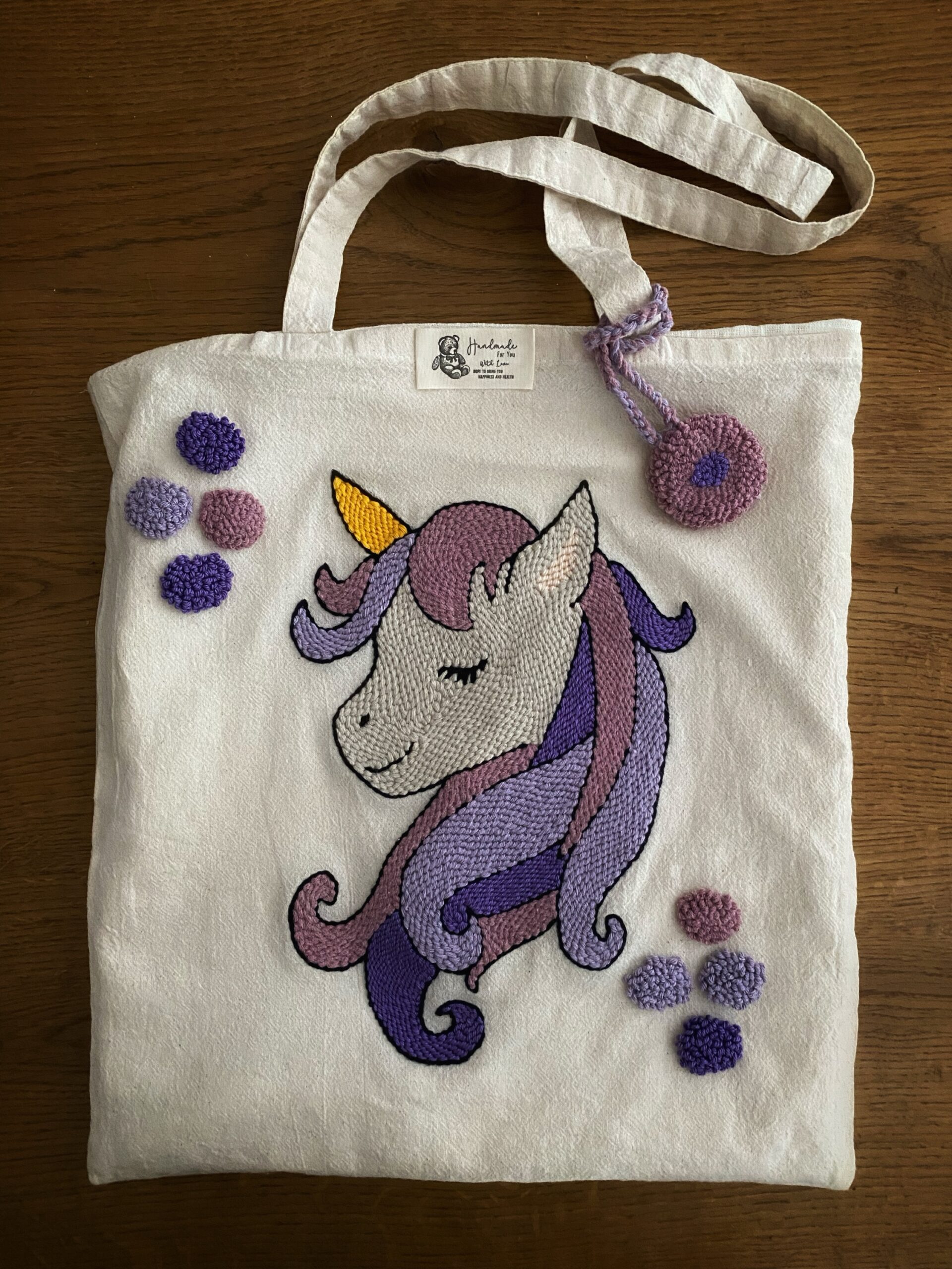 Borsa Tote BAG ricamata a mano in lana e cotone su tela, in busta di lino o di cotone